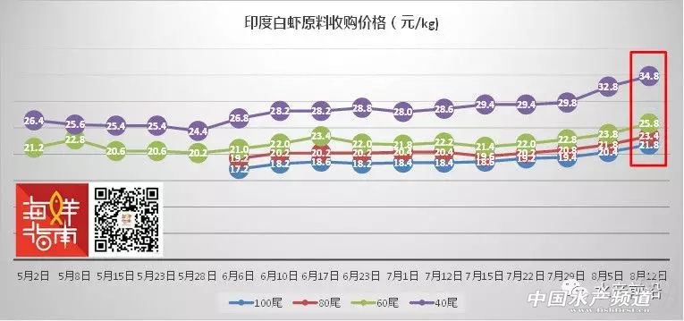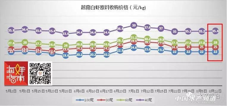 文/水產(chǎn)前沿 彭曉君 珠三角、福建、浙江、天津冰蝦市場(chǎng)開始走俏,各地凍廠大量收購 珠海、新會(huì):71-72頭11.5元/斤打樣。 福建:50頭14.5元/斤,60頭13.5元/斤,每10頭差1元/斤。 浙江:40頭17.5元/斤打樣,40條外16.5元/斤打樣,大一頭加0.2元、小一頭減0.2元。 天津:塘頭價(jià)30頭18.5元/斤,到廠價(jià)18元/斤;塘頭價(jià)40頭16.5元/斤,到廠價(jià)16元/斤。 【本欄目由《水產(chǎn)前沿》、“西瑞動(dòng)!甭(lián)合制定,助各養(yǎng)殖朋友,養(yǎng)得好、賣得好!】 南方白對(duì)蝦 珠三角產(chǎn)區(qū)蝦價(jià)受海捕貨沖擊下跌 華南主產(chǎn)區(qū)白蝦塘頭價(jià) 珠海、新會(huì):本周蝦價(jià)40頭21元/斤,45頭18.5元/斤,50頭16-16.5元/斤,60頭14元/斤,整體蝦價(jià)同比上周下跌0.5元/斤左右。大海捕撈開禁,大量海貨沖擊蝦價(jià)!今日珠三角市場(chǎng)有爛市現(xiàn)象。冰蝦價(jià)格影響不大,71-72頭11.5元/斤打樣。 海南:本周蝦價(jià)30頭22.5元/斤,40頭19元/斤,45頭17.5元/斤,50頭16元/斤,大規(guī)格蝦存塘量少,價(jià)格穩(wěn)定,中小規(guī)格蝦價(jià)格逐步上漲0.5元/斤。按照目前的行情走勢(shì)預(yù)測(cè),蝦價(jià)只漲不跌。 陽江:本周蝦價(jià)20頭25元/斤,30頭23元/斤,40頭21元/斤,50頭19元/斤,60頭17元/斤,整體蝦價(jià)猛速上漲,漲幅高達(dá)4元/斤。存塘量少,生猛活水蝦受市場(chǎng)青睞收購價(jià)高。 廣西:本周蝦價(jià)33頭29元/斤,35頭26.5元/斤,40頭24元/斤。目前大規(guī)格蝦存塘較少,市場(chǎng)需求旺盛,蝦價(jià)高位運(yùn)行。據(jù)收蝦商報(bào)價(jià),明天捉20-21頭33.2元/斤。預(yù)計(jì)蝦價(jià)在中秋節(jié)前會(huì)穩(wěn)定有漲,節(jié)后開始下調(diào)。 福建:本周蝦價(jià)30頭27元/斤,40頭24元/斤,50頭19元/斤,60頭17元/斤,中大規(guī)格蝦價(jià)格保持穩(wěn)定略有上漲,小蝦因質(zhì)量不佳價(jià)格波動(dòng)下調(diào)。冰蝦價(jià)格:50頭14.5元/斤,60頭13.5元/斤,每10頭差1元/斤。