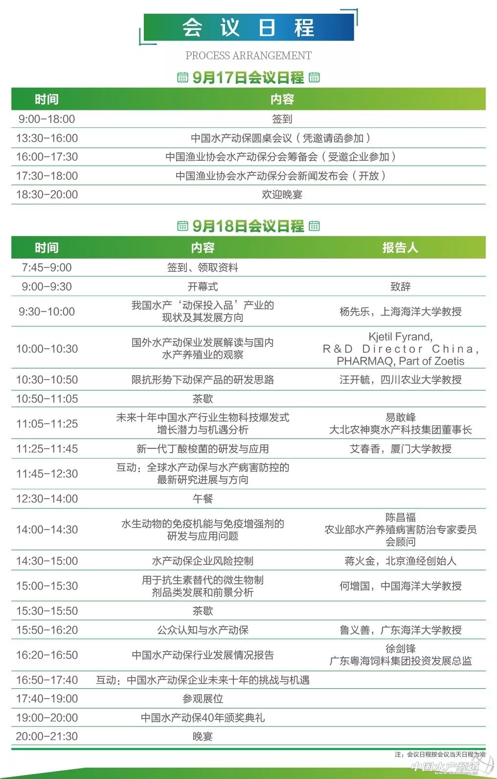 中國水產頻道報道,水產前沿雜志、中國水產頻道攜手水產動保監管部門、國內外權威專家、全國頂級水產動保企業,將于9月17-18日舉辦首屆全國水產動保產業大會。會議期間,將同時舉辦“中國水產動保40年”頒獎典禮。 2018中國水產動保產業年會 2018 China Aquatic Animals Health Care Industry Annual Meeting 暨“中國水產動保40年”頒獎典禮 China Aquatic Animals Health Care Industry 40th Anniversary Celebration 主題:創新·合作·合規與未來十年 Themes: Innovation Cooperation Compliance and The Next Decade 2018年9月17-18日 大咖云集,共襄盛舉 福建廈門,不見不散 時間 9月17-18日(17日全天報到) 地點 福建·廈門佰翔五通酒店 組織單位 會議日程 特邀報告嘉賓 楊先樂 上海海洋大學教授,博士生導師。主要的研究方向水生動物醫學基礎理論與應用技術。在草魚出血病防治技術、草魚出血病細胞培養滅活疫苗、中華絨螯蟹顫抖病防治技術、中國大鯢子二代全人工繁育及工廠化養殖模式、漁用藥物代謝動力學及其藥物殘留檢測技術等方面的研究獲得了較大的成果,先后獲得國家、省市科技進步一等獎、二等獎、三等獎等25余項,國家、省市優秀科技論文獎15項,鑒定成果15項。1992年獲農業部有突出貢獻的中青年專家,同年起享受國務院政府特殊津貼。 陳昌福 日本愛媛大學理學博士,曾任華中農業大學水產學院教授。現任社會兼職農業部動物疫病防治咨詢專家、農業部水產養殖病害專家委員會委員、農業部全國水產品質量安全工作組成員、農業部全國獸藥殘留與耐藥性控制專家委員會執行委員、中國水產學會漁藥專業委員會副主任委員。出版專著和譯著多部。獲湖北省科技進步一等獎1項,二、三等獎多項。 汪開毓 博士,教授,博士生導師,四川省有突出貢獻的優秀專家,四川省學術與技術帶頭人。2002年、2007年和2008年分別赴加拿大、日本、韓國和歐洲進行學術交流和訪問學習。擔任中國農業部獸藥典委員會委員,中國農業部新獸藥評審委員會委員,中國動物病理學會常務理事,中國獸醫病理學家委員會委員,中國魚病研究會委員,四川省魚病研究會主任,,《水產學報》編委等學術團體職務。 何增國 現任中國海洋大學藥學院筑峰教授,中國海洋大學水產學院特聘教授,青島海洋生物醫藥研究院首席科學家,海洋微生物工程研發中心主任。 2014年由北京市組織部認定為北京市“海聚人才”、授予北京市特聘科學家。2015年由山東省政府認定為海外高層次人才,授予“泰山學者海外特聘專家”。 專業特長包括適用生物技術的工程化及產業化運作以及抗菌肽等高端微生物多謝產物的開發。掌握從菌種資源、上游生物發酵、下游分離純化及制劑技術等的國際領先的核心技術,并擁有在最先進的跨國公司領導并從事微生物工程產業開發及一線生產的豐富經驗。 魯義善 博士生導師。廣東省“千百十”工程省級培養對象,國際食品法典食源性抗菌素耐藥性專家組成員,農業部水產養殖病害防治專家委員會委員,全國水產品質量安全專家工作組委員,全國獸藥殘留與耐藥性控制專家委員,全國水生動物疾病遠程輔助診斷服務網專家,廣東省水生動物健康評估工程技術研究中心主任,廣東省教育廳 “廣東海洋大學-英國斯特靈大學漁用疫苗實用化技術”國際合作平臺負責人。 艾春香 廈門大學海洋與地球學院教授,理學博士 Kjetil Fyrand Kjetil Fyrand, R&D Director China, PHARMAQ, Part of Zoetis(法瑪克中國區水產研發總監) 蔣火金 1985年上海海洋大學(原上海水產學院)水產養殖專業畢業;1985——1995年中國水產科學研究院漁業經濟研究所。期間,在河北玉田流澗頭水產養殖場5年;1995年至今,北京漁經生物技術有限責任公司負責人、第四屆中國獸藥典委員會委員、農業部漁業局全國水產標準化技術委員會第三屆水生動物防疫標準化技術工作組委員。 易敢峰 博士,大北農集團高級副總裁,大北農神爽水產科技集團董事長、總裁。是國內外知名的免疫營養專家和技術管理者,也是行業投資和發展經驗非常豐富的高級資本運作人才中組部海外高層次引進工作小組發布了第十二批國家“千人計劃”入選名單,共有565名青年人才和57名創業人才入選,“易敢峰博士”作為創業人才,赫然在列。 徐劍鋒 新加坡國立大學工商管理碩士,91年開始從事水產飼料和動保行業營銷與管理工作。曾供職于國內著名的水產飼料企業,現任廣東粵海飼料集團投資發展總監,湛江市水保協會會長。 參與論壇互動的專家與重要產業人士 集美大學謝潮添副校長 華南農業大學秦啟偉院長 華東理工大學張元興教授 江蘇省漁業技術推廣中心陳輝研究員 中山大學李安興教授 集美大學水產學院鄢慶枇教授 國家海洋局第三海洋研究所邵宗澤研究員 福建省淡水水產研究所王劍鋒副所長 集美大學水產學院郭玉清副院長 福建省淡水水產研究所樊海平研究員 福建省農業科學院生物技術研究所龔暉研究員 福建省淡水水產研究所何國森主任 福建省淡水水產研究所劉銀華先生 國家海洋局第三海洋研究所單大鵬先生 江蘇農牧科技職業學院阮記明先生 江蘇農牧科技職業學院袁圣先生 珠江水產研究所水產藥物實驗廠桑朝炯先生 中國漁業協會水產投入品分會尹文林先生 大北農神爽水產科技集團易敢峰董事長 廣州利洋水產科技股份有限公司馬家好董事長 北京漁經生物技術有限