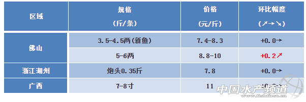 中國水產頻道原創報道, 文/ 水產前沿 彭曉君 黃顙魚 佛山區域:目前黃顙魚新魚存塘量大,舊魚魚頭普遍4.5-5.5兩。今年黃顙魚市場低迷,放苗積極性不高,新魚放苗少,受天氣影響,新魚爆頭,腹水,出血多;近期病害腸炎,爆頭,爛身,花身,爆發性出血,肝出血,肝膽綜合征等。 浙江湖州:最近價格穩定,供求關系相對平衡,市場行情依然低迷,預期后期價格依然維穩。 廣西區域:近期黃顙魚存量少,價格穩定。 【關鍵字】:黃顙魚 塘頭價 水產養殖 |