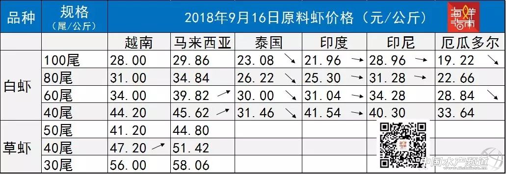 文/圖 海鮮指南(seafood-guide) 張麗麗、陳磊 海外白蝦原料收購價格 本期(2018年9月16日)全球白蝦主產區中,泰國、厄瓜多爾蝦價跌幅較大,越南企穩,馬來止跌回升,印度、印尼跌幅較小。具體如下: 注:以上產品為當地蝦類的塘頭收購價,匯率按當地貨幣實時兌換人民幣計算 越南白蝦企穩。與9月9日相比,9月16日越南蝦價漲速幾乎可以忽略不計。9月16日,40、60、80尾/公斤漲幅為0.2元/公斤,100尾/公斤與之前持平,價格穩定。 5月28日至9月16日越南白蝦原料收購價格走勢(來源:海鮮指南) 厄瓜多爾白蝦價格回落。與9月9日相比,9月16日多爾蝦出現不同程度回落,月9月初價格基本持平。100尾/公斤降幅為2元/公斤,60尾/公斤的降幅為1.3元/公斤,40尾/公斤降幅為0.6元/公斤,80尾/公斤價格穩定。 5月28日至9月16日厄瓜多爾白蝦原料收購價格走勢(來源:海鮮指南) 泰國白蝦大幅下跌。與9月9日相比,9月16日泰國白蝦100尾/公斤降幅為0.9元/公斤,80尾/公斤降幅1.9元/公斤,60尾/公斤的降幅為1.7元/公斤,40尾/公斤降幅高達為4元/公斤。 印度白蝦繼續小幅回落。與9月9日相比,9月16日印度白蝦100尾/公斤降幅為0.8元/公斤,其他規格價格下滑0.3-0.4元/公斤。 5月28日至9月16日印度白蝦原料收購價格走勢(來源:海鮮指南) 馬來西亞止跌回升。與9月9日相比,9月16日馬來西亞100、80尾/公斤漲幅為0.2元/公斤,60、40尾/公斤的漲幅為1.1元/公斤。 印尼小幅波動。與9月9日相比,9月16日印尼100、80尾/公斤降幅為0.4元/公斤,60尾/公斤的降幅為0.1元/公斤,40尾/公斤價格略微上漲,漲幅為0.3元/公斤。 9月21日國產白蝦塘頭價分析 節慶來臨,漲漲漲 湛江、海口:本周雷州蝦價:30頭22元/斤,40頭20元/斤,50頭18元/斤,60頭16元/斤;海口蝦價:30頭20元/斤,40頭18元/斤,50頭16元/斤,60頭14元/斤。在臺風山竹侵襲期間,養戶紛紛搶收價格下跌明顯。晚造蝦目前處于投苗階段,市場需求強勁,看好后續上漲,預計中秋期間小幅度上漲。 珠海新會:本周蝦價40頭21.5元/斤,50頭17元/斤,60頭15元/斤,70頭12.5元/斤,蝦價微回升。對蝦主產地受臺風影響,被淹塘口不多,主要后續發病增多。大多養戶惜售健康蝦,在盼中秋、國慶雙節日拉動價格上漲。 中山-番禺-東莞-肇慶:本周蝦價30頭27-29元/斤,40頭22-24元/斤,50頭20-21元/斤,60頭17-18元/斤。目前市場大規格蝦偏少,已經臨近中秋國慶,且蝦價呈上升趨勢,大規格蝦基本漲2-3元/斤,中規格蝦上升約1元/斤!問題:受臺風天氣影響,蝦塘水位上升,泥漿水渾濁,蝦普遍出現較大應激,以致近幾日來吃料大量減少。近日天氣趨于好轉,蝦生長逐漸恢復。 廣西北海:本周蝦價40頭26元/斤(漲2元/斤),50頭21.5元/斤(漲0.5元/斤),60頭18元/斤。目前市場規格蝦量很少,中秋節臨近,節慶消費帶動利好,大規格蝦價格大幅上漲,中小規格穩定微漲。 汕頭:本周蝦價40頭20元/斤,50頭17元/斤,60頭15元/斤,70頭13元/斤。高位池已經抓完蝦,計劃放苗;土塘開始大量出蝦,由于病害較嚴重,蝦產量低,養殖池塘主要規格在40-100頭。本周大量降雨,土塘養殖出蝦量大幅減少,蝦價較低。(行情持續穩定,受臺風影響,較多養戶不敢放苗,計劃延遲) 漳州:本周蝦價30頭24元/斤,40頭20元/斤,50頭17元/斤,60頭15元/斤。高位池養殖已經抓完蝦,本階段計劃放苗,無存塘大規格蝦。市場上主要銷售土塘蝦,存塘規格蝦在40-80頭。大蝦存塘量少,病害增多,加之本周臺風天氣,雨水頻繁,病蝦上市量增多,蝦價較低。(行情持續穩定,受臺風影響,較多養戶不敢放苗,計劃延遲) 上海:本周蝦價40尾18元/斤,行情維持低價運行。外來活水蝦和冰蝦進入本地市場的影響較大且時間長,加之今年白蝦養殖成功率低,產量低,預計后期蝦價維穩為主。 浙江紹興:本周蝦價(冰蝦)30頭18.5元/斤,40頭16.5元/斤,50頭14.5元/斤。紹興近期依然以出冰蝦為主,活水蝦較少,蝦價總體穩定。由于中秋和國慶來臨,蝦價或會略微上漲趨勢。 海外草蝦收購價格行情 與9月9日相比,9月16日越南草蝦價格相對穩定。9月16日,40尾/公斤漲幅在1.2元/公斤,30尾、50尾/公斤價格穩定。 6月10日至9月16日越南草蝦收購價格走勢(來源:海鮮指南) 與9月9日相比,9月16日馬來西亞草蝦(虎蝦)價格穩定,略有上浮,9月16日,30、40、50尾/公斤各規格漲幅在0.3元/公斤。 6月10日至9月16日馬來西亞草蝦收購價格走勢(來源:海鮮指南) 溫馨提示: 以上價格行情由媒體“海鮮指南”“水產前沿”統計整理發布,僅供參考。市場有風險,交易需謹慎。 |