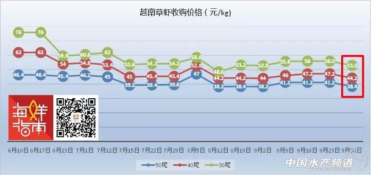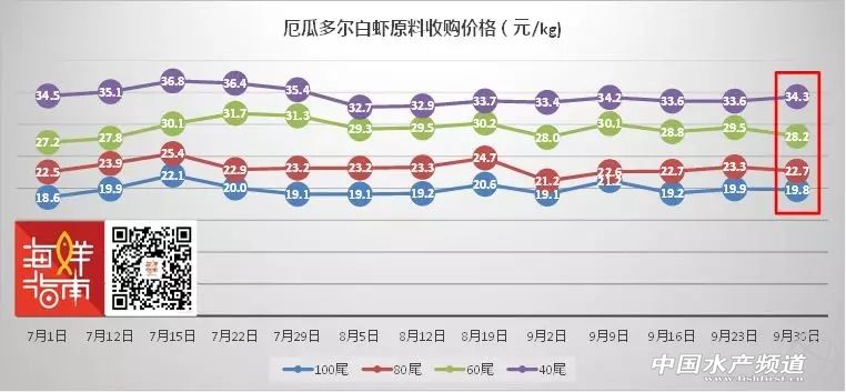 文/圖 海鮮指南(seafood-guide) 張麗麗、陳磊 海外白蝦原料收購價格 本期(2018年9月30日),環顧全球白蝦主產區原料價格, 越南、泰國、厄瓜多爾白蝦均出現下滑趨勢,印尼、印度白蝦逆勢上漲。具體如下: 注:以上產品為當地蝦類的塘頭收購價,匯率按當地貨幣實時兌換人民幣計算 越南蝦價下跌明顯。與9月23日相比,9月30日越南蝦價開始走低。100尾/公斤降幅為0.8元/公斤,80尾/公斤和60尾/公斤降幅為1元/公斤,40尾/公斤降幅高達為2.4元/公斤。 7月1日至9月30日越南白蝦原料收購價格走勢(來源:海鮮指南) 筆者分析,為避開國慶交通擁堵物流變緩,臨近國慶,國內進口商減少對東南亞產區對蝦的采購量,受供求關系影響,價格下滑。 厄瓜多爾白蝦中等規格價格下滑,大規格穩中上升。與9月23日相比,9月30日100尾/公斤降幅微小,為0.1元/公斤、80尾/公斤降幅為0.7元/公斤,、60尾/公斤降幅為1.4元/公斤,40尾/公斤不跌反升,漲幅為0.7元/公斤。 7月1日至9月30日厄瓜多爾白蝦原料收購價格走勢(來源:海鮮指南) 泰國小規格白蝦下跌明顯。與9月23日相比,9月30日泰國100尾/公斤規格降幅為1.4元/公斤、80尾/公斤降幅為1.8元/公斤,60尾/公斤的小幅下跌,降幅為0.4元/公斤,40尾/公斤價格堅挺,漲幅為0.5元/公斤。 9月2日至9月30日泰國白蝦原料收購價格走勢(來源:海鮮指南) 印度白蝦止跌反彈。與9月23日相比,9月30日印度小規格白蝦價格下滑明顯,100尾/公斤降幅為1.1元/公斤,但中等規格及大規格白蝦均有所上漲。80尾/公斤漲幅為2.2元/公斤,60尾/公斤漲幅為0.7元/公斤、40尾/公斤漲幅為0.2元/公斤。 7月1日至9月30日印度白蝦原料收購價格走勢(來源:海鮮指南) 馬來西亞蝦價企穩。與9月23日相比,9月30日馬來西亞各規格白蝦價格穩定,無明顯波動。 印尼蝦價大幅上漲。與9月23日相比,9月30日印尼100尾/公斤漲幅達2.2元/公斤、80尾/公斤漲幅達2.6元/公斤,60尾/公斤漲幅達2.2元/公斤、40尾/公斤的漲幅為2.6元/公斤。 海外草蝦收購價格行情 與9月23日相比,9月30日越南草蝦價格明顯下跌,各規格降幅在2.8-3元/公斤。 6月10日至9月30日越南草蝦收購價格走勢(來源:海鮮指南) 與9月23日相比,9月30日馬來西亞草蝦(虎蝦)價格穩定,未出現明顯波動。 6月10日至9月30日馬來西亞草蝦收購價格走勢(來源:海鮮指南) 溫馨提示: 以上價格行情由媒體“海鮮指南”“水產前沿”統計整理發布,僅供參考。市場有風險,交易需謹慎。 |