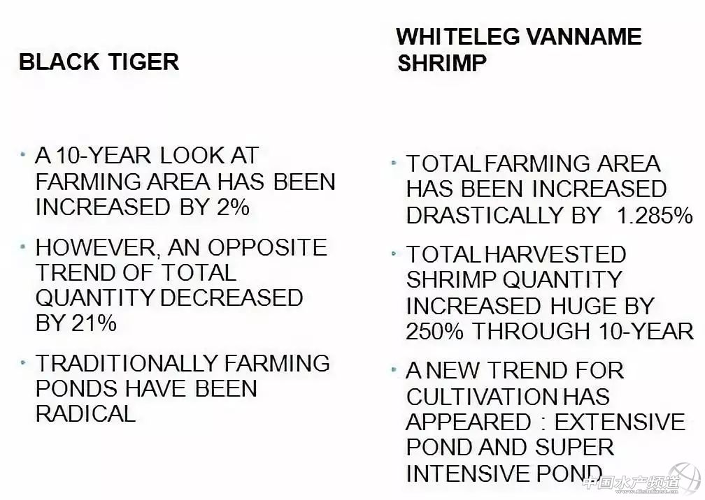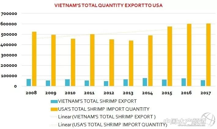 文/ 海鮮指南(seafood-guide) 陳磊 越南蝦養殖產業從1997年開始規;l展,主要養殖品種為南美白對蝦和黑虎蝦。近十年來,越南蝦的總養殖面積為60-70萬公頃左右,越南養殖加工出口的蝦產品和經過越南轉口貿易的蝦產品在世界蝦貿易量中占有舉足輕重的位置。 海鮮指南整理2018年越南VIETFISH會議上嘉賓發言的PPT,向讀者展示近年來越南蝦產業的發展狀況。 10年以來,越南的黑虎蝦養殖面積僅增加了2%,但是越南黑虎蝦的總貿易量卻增加了21%。這個數據在南美白對蝦中表現的更為明顯,從2007年-2017年,越南南美白對蝦的養殖面積僅僅增加了1.285%,但總的產出量卻增長了250%。產量的增長得益于對養殖技術和密度的不斷高要求。 從越南流入中國的邊貿蝦產品減少,越南蝦產量激增 越南蝦類養殖總產量(黃線)和出口總量(藍線)之間的變化圖 從2013年-2016年間,越南的蝦出口量遠遠大于越南本地原料蝦產品的總產量,說明有大量的蝦產品通過越南進行轉口貿易,并最后進入亞洲其他國家銷售。 同時,在2017年,越南本地的蝦產品產量實現快速增長,從2016年的23萬噸,增加至2017年的42.5萬噸。 越南進口蝦類數據 從2012年到2016年,越南進口蝦產品數據連年增長,到2017年,出現了小幅下降,但進口量也有27萬噸左右。而作為蝦產品主要生產國的越南進口的蝦也主要是經過“灰色貿易”渠道,轉口到其他國家銷售,中國就是最主要的終端消費市場。 2017年底到2018年初,海關加大了對邊貿走私水產品的查處力度,預計在2018年,通過越南中轉邊貿進入中國市場的蝦產品數量將進一步減少,市場正關化和規范化程度快速提升。 越南蝦產品在國際市場的表現: 2017年,全球前10大蝦產品出口國,排在第一的是印度,越南排在第3位,中國則是第7位。 印度蝦產品的主要出口國 美國市場蝦產品總需求量和越南對美國市場蝦產品出口量 美國市場對蝦產品的總需求量從2015年-2017年間處于平穩階段,每年需求穩定在60萬噸左右。越南對美國蝦產品的出口量在2017年出現減少,出口量僅有不到10萬噸。 美國目前也是越南蝦產品的第三大出口市場,年出口額超過6億美元,占越南蝦出口總值的17%。同時,今年9月份,美國對越南水產品進口的反傾銷稅稅率開始降低,向市場釋放積極信號,預計在2019年,越南對美國出口的蝦和巴沙魚產品數量將會增加。 日本市場蝦產品總需求量和越南對日本市場蝦產品出口量 2017年,日本進口蝦總額為25億美元,日本市場一直以來都是越南工廠十分重視的市場之一,無論是越南的蝦產品還是巴沙魚產品,越南工廠愿意投入十足的精力去開拓日本市場。但日本市場僅10年來的表現都很平穩,越南蝦產品對日本出口量都穩定的在5000噸/年左右,并沒有較大的波動。 展望未來:中國將成為全球蝦類消費第一大市場 預計到2020年,中國將會是全球蝦產品消費的第一大市場,年蝦產品消費總量在200萬噸左右,北美、日本和歐洲緊隨其后面。 未來中國市場對蝦產品的需求也會顯著增長,從而拉動全球蝦類產量的增加。 |