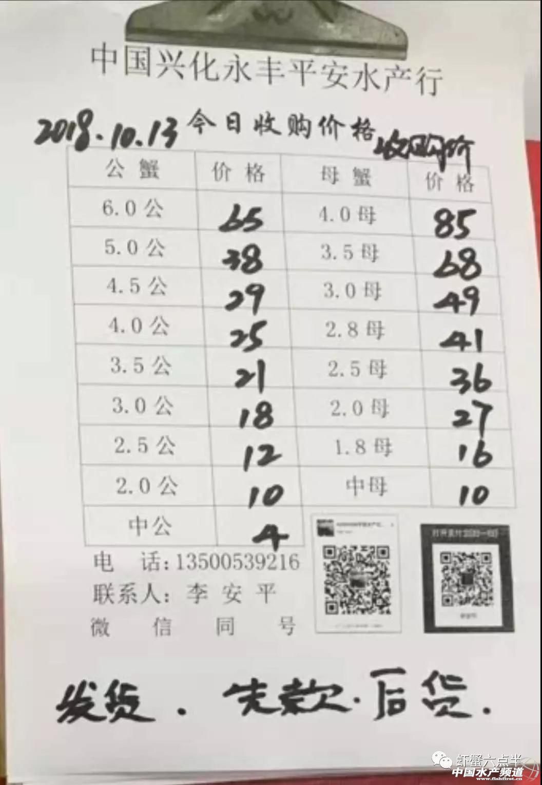 中國水產頻道報道, 報價是為了讓養殖戶能早點了解價格信息,根據行情盡量賣個好價錢。希望養殖戶朋友也能參與報價,提供價格信息,讓更多的人能更快更早的了解當天行情 2018.10.13 高淳 宜興 興化 泗洪 湖北 【關鍵字】:蝦蟹 價格 水產養殖 |