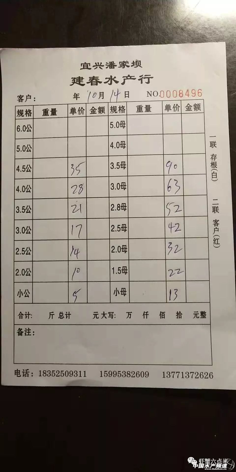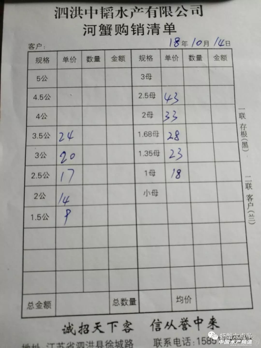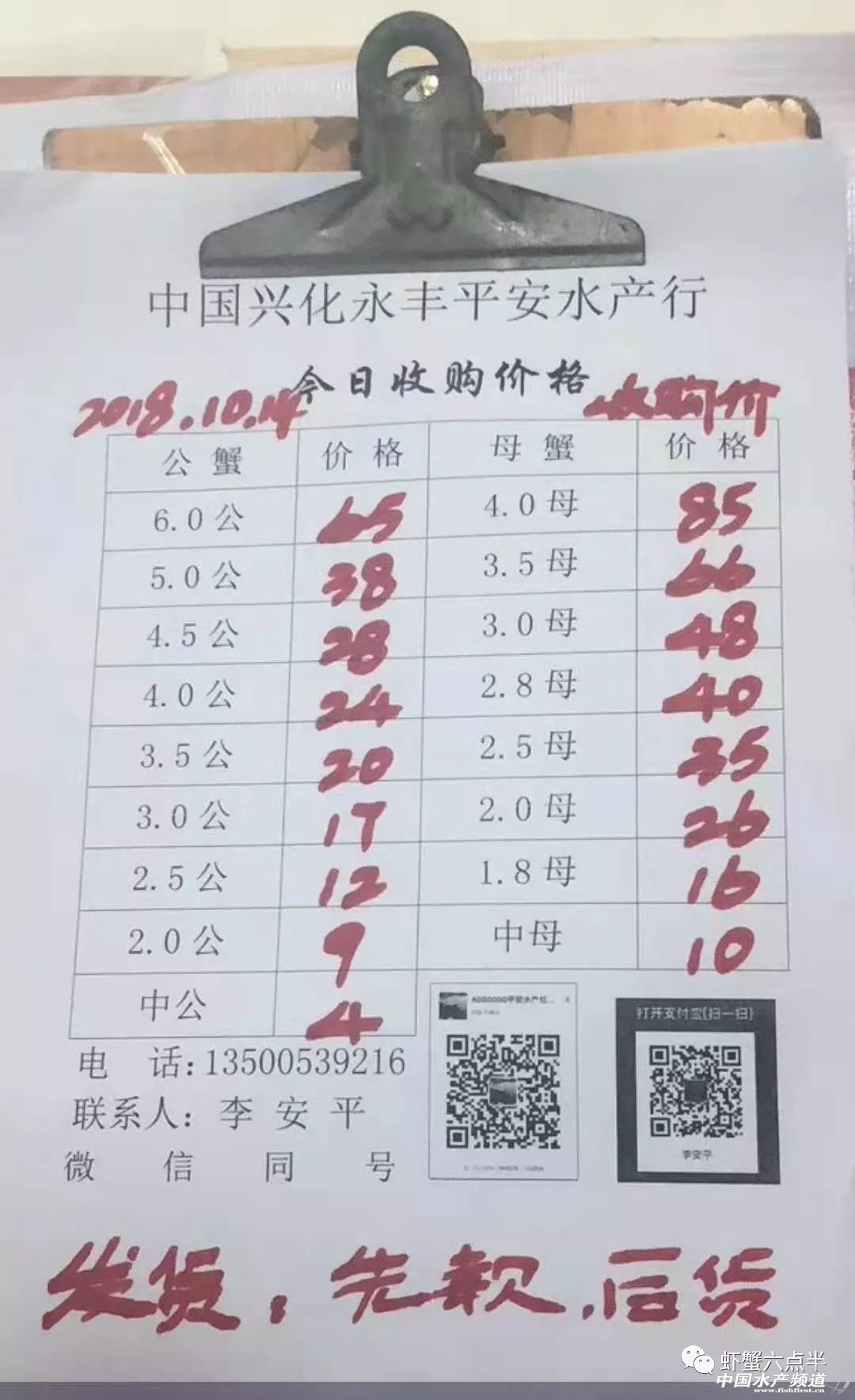 中國水產頻道報道, 報價是為了讓養殖戶能早點了解價格信息,根據行情盡量賣個好價錢。希望養殖戶朋友也能參與報價,提供價格信息,讓更多的人能更快更早的了解當天行情 2018.10.14 高淳 宜興 興化 泗洪 湖北 【關鍵字】:蝦蟹 價格 水產養殖 |