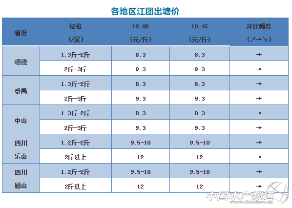 中國水產頻道原創報道, 文/圖何氏水產、水產前沿李靜 江團 1、廣東江團價格與上周價格一樣,銷量與上周變化不大,現在價格已經很低,接下來價格會有小幅上漲,銷量會慢慢上升。 2、四川江團本周價格與上周差不多,現在本地銷量比較大,行情好,價格接下來或許會持穩。 【關鍵字】:江團 塘頭價格 水產養殖 |