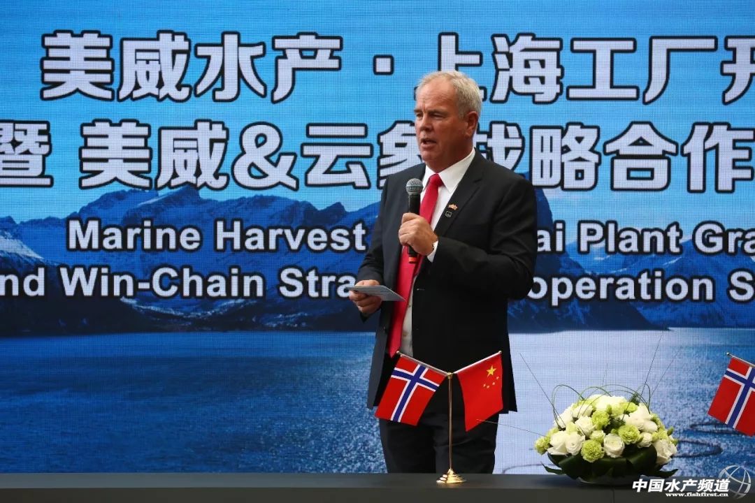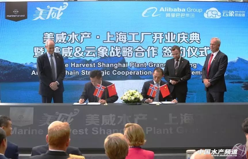 中國(guó)水產(chǎn)頻道原創(chuàng)報(bào)道,挪威國(guó)王哈拉爾五世(Harald V)、宋雅王后(Sonja)和阿里巴巴集團(tuán)董事局主席馬云現(xiàn)身助陣!全球最大三文魚(yú)生產(chǎn)商美威重磅布局中國(guó)市場(chǎng)——在中國(guó)首家三文魚(yú)加工廠(chǎng)昨日上海開(kāi)業(yè),并現(xiàn)場(chǎng)與阿里巴巴云象供應(yīng)鏈達(dá)成戰(zhàn)略合作。兩個(gè)領(lǐng)域的超級(jí)大佬此番攜手,無(wú)疑讓人充滿(mǎn)想象,他們將會(huì)為中國(guó)三文魚(yú)產(chǎn)業(yè)帶來(lái)什么? 文/ 海鮮指南(seafood-guide)沈基文 對(duì)于中國(guó)三文魚(yú)產(chǎn)業(yè)而言,昨天無(wú)疑是一個(gè)具有特別意義的日子。 2018年10月18日,挪威國(guó)王哈拉爾五世(Harald V)、宋雅王后(Sonja)和阿里巴巴集團(tuán)董事局主席馬云低調(diào)現(xiàn)身“美威水產(chǎn) · 上海工廠(chǎng)開(kāi)業(yè)慶典暨美威&云象戰(zhàn)略合作簽約儀式”現(xiàn)場(chǎng),共同見(jiàn)證了全球最大的三文魚(yú)生產(chǎn)商美威水產(chǎn)(Marine Harvest,也稱(chēng)“耕海集團(tuán)”)與阿里巴巴旗下云象供應(yīng)鏈的戰(zhàn)略合作簽署儀式(MOU)。 挪威國(guó)王哈拉爾五世(Harald V)、宋雅王后(Sonja)和阿里巴巴集團(tuán)董事局主席馬云低調(diào)現(xiàn)身“美威水產(chǎn) · 上海工廠(chǎng)開(kāi)業(yè)慶典暨美威&云象戰(zhàn)略合作簽約儀式”現(xiàn)場(chǎng) 從左到右是美威水產(chǎn)董事長(zhǎng) Ole-Eirik Lerøy、挪威國(guó)王哈拉爾五世(Harald V)、阿里巴巴集團(tuán)董事局主席馬云 在這場(chǎng)超高規(guī)格的活動(dòng)中,挪威貿(mào)易和工業(yè)部長(zhǎng) Torbjørn RøeIsaksen、寶山區(qū)區(qū)委書(shū)記汪泓也到達(dá)現(xiàn)場(chǎng)支持。不僅如此,活動(dòng)主角美威水產(chǎn)董事長(zhǎng) Ole-Eirik Lerøy、阿里巴巴集團(tuán)總裁Michael Evans(白求恩)、美威集團(tuán)亞洲區(qū)總經(jīng)理Charlie WU、云象供應(yīng)鏈聯(lián)席董事長(zhǎng)金光磊等高層代表悉數(shù)到場(chǎng)。 美威集團(tuán)董事長(zhǎng)Ole-Eirik Lerøy 先生致開(kāi)幕詞 阿里巴巴集團(tuán)總裁Michael Evans先生致辭 挪威貿(mào)易和工業(yè)部部長(zhǎng)Torbjørn Røe Isaksen先生發(fā)表講話(huà) 一個(gè)是全球最大三文魚(yú)生產(chǎn)商,一個(gè)是阿里巴巴旗下云象供應(yīng)鏈,兩個(gè)領(lǐng)域的超級(jí)大佬此番攜手,無(wú)疑讓人充滿(mǎn)想象,他們,將會(huì)為中國(guó)三文魚(yú)產(chǎn)業(yè)帶來(lái)什么? 在中國(guó)首家三文魚(yú)加工廠(chǎng)開(kāi)業(yè),全球最大三文魚(yú)生產(chǎn)商美威戰(zhàn)略布局中國(guó)市場(chǎng) 早在今年上半年,美威就已經(jīng)透露其將在中國(guó)建立三文魚(yú)加工廠(chǎng),并且將在中國(guó)開(kāi)2000家三文魚(yú)主題餐廳。今年5月中旬,美威水產(chǎn)董事長(zhǎng) Ole-Eirik Lerøy 接受海鮮指南采訪(fǎng)時(shí)表示,其建立加工廠(chǎng)的原因主要是看好中國(guó)市場(chǎng),希望繼續(xù)挖掘中國(guó)市場(chǎng)的潛力。 美威(Marine Harvest,也稱(chēng)“耕海集團(tuán)”)是總部位于挪威卑爾根的上市企業(yè),在全球24個(gè)國(guó)家和地區(qū)擁有13700名員工,是全球最大的三文魚(yú)生產(chǎn)商。于1996年進(jìn)入中國(guó)市場(chǎng);2010年,“美威”品牌在中國(guó)成立;2018年在上海建立第一家冰鮮三文魚(yú)加工廠(chǎng)。 全球最大的三文魚(yú)生產(chǎn)商在中國(guó)建立加工廠(chǎng),足以說(shuō)明中國(guó)市場(chǎng)的三文魚(yú)產(chǎn)業(yè)發(fā)展空間正在被重視,海鮮指南了解到,這一舉動(dòng),是美威在亞洲市場(chǎng)最重要的戰(zhàn)略部署。 據(jù)了解,美威在上海的加工廠(chǎng)地址位于寶山區(qū),預(yù)計(jì)年產(chǎn)量3000-4000噸,年產(chǎn)值5億,將全面采取自動(dòng)化加工方式替代傳統(tǒng)人工。在產(chǎn)品形式上,將會(huì)有更多更適合終端消費(fèi)的產(chǎn)品形式出現(xiàn),例如終端使用的魚(yú)片產(chǎn)品,餐飲使用的魚(yú)段產(chǎn)品等。 美威水產(chǎn)董事長(zhǎng) Ole-Eirik Lerøy 說(shuō),“中國(guó)是一個(gè)非常有吸引力的市場(chǎng),與阿里巴巴和云象供應(yīng)鏈的合作對(duì)于我們雙方來(lái)說(shuō)是順勢(shì)而為的選擇。美威期待更加堅(jiān)實(shí)立足中國(guó)市場(chǎng)并在上海開(kāi)設(shè)新的加工廠(chǎng),基于此,我們期待尋求更多的機(jī)會(huì)與阿里巴巴和云象供應(yīng)鏈深化雙方的合作。中國(guó)消費(fèi)者越來(lái)越喜愛(ài)三文魚(yú),通過(guò)與云象的合作,我們希望把更多的新鮮三文魚(yú)送上中國(guó)消費(fèi)者的餐桌。” 美威水產(chǎn)上海工廠(chǎng)盛大開(kāi)業(yè) 阿里巴巴云象供應(yīng)鏈助力美威,兩個(gè)領(lǐng)域的超級(jí)重磅戰(zhàn)略合作,或?qū)⒅苯佑绊懼袊?guó)三文魚(yú)市場(chǎng)格局 當(dāng)美威工廠(chǎng)開(kāi)始運(yùn)營(yíng)后,云象供應(yīng)鏈?zhǔn)敲劳谥袊?guó)的重要戰(zhàn)略合作伙伴。 從左到右:阿里巴巴集團(tuán)總裁Michael Evans、美威集團(tuán)亞洲區(qū)總經(jīng)理Charlie WU,云象供應(yīng)鏈聯(lián)席董事長(zhǎng)金光磊、挪威貿(mào)易和工業(yè)部長(zhǎng)Torbjørn Røe ISAKSEN、美威董事會(huì)主席Ole-Eirik Lerøy 據(jù)海鮮指南了解到,云象將為美威提供線(xiàn)上銷