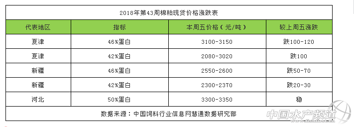 中國水產(chǎn)頻道報道, 本周中國棉粕行情適度回調(diào)。隨著內(nèi)地棉籽上市和新季棉粕供應(yīng)量的進一步增加,加之飼企前期多有備貨、豬瘟擴散、水產(chǎn)料加工收尾,利空棉粕需求量,在外圍豆粕適度回調(diào)局勢下,棉粕市場也承壓回調(diào)。但棉油廠榨利微薄,且棉粕前期出貨較快,短期供應(yīng)整體不多,中美貿(mào)易格局下,豆粕長線看漲預(yù)期不改,棉粕供方市場也對后市看多,棉粕跌幅受限。后期若豆粕行情強勢反彈,則棉粕也將隨之水漲船高,10月豆粕看漲已是難改的事實,因此預(yù)計10月棉粕均價環(huán)比繼續(xù)偏強。截止目前,山東46%蛋白棉粕參考報價3100-3200元/噸;新疆46%蛋白棉粕參考報價2550-2600元/噸。 |
