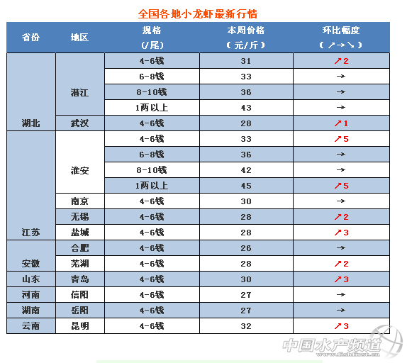 文/ 水產前沿 鄭鵬飛 一周資訊 據統計,2017年我國小龍蝦養殖面積超過1200萬畝,產量約110萬噸,總產值達到2600億。有業內人士推測,2018年小龍蝦總產值應該在4000億左右。隨著小龍蝦行業的火爆,大批飼料、動保以及養殖企業都逐漸把視線聚焦在這條蝦上。今年,荊州匯海新工廠于6月正式動工開建,湖南新廠也已經正式簽訂用地合同。荊州天佳更是在今年實現了小龍蝦飼料銷量過萬噸。用5年時間迅速成長起來的動保企業漁美康更是積極整合小龍蝦產業資源,今年6月份正式于中國水產流通協會小龍蝦分會以及信良記食品科技有限公司達成三方合作。大北農也是看重這片市場,華中大區在今年8月份的銷量已經突破11萬噸,較去年同期增長30%,而且江西的新廠也即將建成。海大作為目前全球唯一水產料超300萬噸的飼料企業,今年華中大區蝦蟹料總銷量從去年的2萬噸增長到約5萬噸,小龍蝦料銷量翻了一倍多。面對各大企業的進駐和不斷發力,明年的小龍蝦產業一定更為火爆。 一周行情 從最新了解到的市場行情來看,本周小龍蝦整體行情相比上周再次出現明顯上漲。其中,湖北和江蘇作為小龍蝦的主要產地,本周的小龍蝦價格均出現上漲,最大漲幅達到5元/斤。不過在一波上漲之后,從26日開始部分地區價格出現回落,最近兩天整體行情再次趨于穩定,有個別地區的價格仍有小幅下調。隨著冷空氣的到來,目前大部分地區有價無蝦。 據養殖戶介紹,目前江西撫州地區基本已經沒有蝦賣了。宜昌枝江地區目前3-5錢統貨的最新報價為23-25元/斤,6錢以上的賣28元/斤。湖南常德地區目前也已經幾乎賣完,能賣的蝦很少。 小龍蝦小貼士 隨著天氣轉涼,小龍蝦也紛紛開始打洞進入抱卵階段。很多地區養殖戶也正忙于稻谷收割和蝦塘清整,為明年做準備。對于種蝦投放有幾點需要注意: 1.投放時間盡量要早。因為小龍蝦一般在6-8月是交配高峰,7-10月產卵。所以,投放種蝦最好能在9月底之前完成。否則在越冬時容易出現凍死或者凍傷的問題。 2.雌雄投放比例要合適,購買種蝦的時候最好能夠把雌雄比例控制在2.5:1左右,選擇6錢以上,性腺發育較好的大規格蝦。 3.入冬后做好避寒工作。入秋后投喂較高檔的飼料為抱卵積蓄能量,入冬前把水位加滿,適當進行肥水。 |