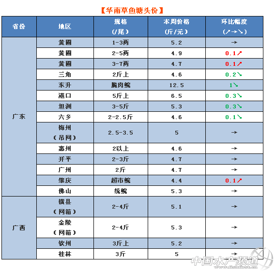文/圖 水產前沿 鄭鵬飛 一周要聞 1.今年草魚行情從年初開始就是一路走低,草魚沒人要和價格的持續低成為廣大草魚養殖戶心中的痛!加上拆網箱導致不斷有魚集中上市擾亂市場,魚價不斷下滑。據養殖戶介紹,目前廣西地區大部分網箱都已經基本拆除,還有河北白洋淀幾萬畝也正在緊鑼密鼓地拆拆拆和賣賣賣,是否意味著草魚行情即將迎來轉機? 2.從最新市場了解到的情況來看,非洲豬瘟對于魚價上漲還是有著一定的影響。據養殖戶介紹,在北方很多養豬場關閉后徐州地區賣魚量明顯增加,魚價也有所好轉。隨著最近湖南再次發現非洲豬瘟,近期常德有部分地區的草魚價格也是出現了上漲。不過,也有養殖戶表示,非洲豬瘟導致草魚銷量增加只是暫時的,草魚行情能否真正上漲關鍵還是看草魚自身的市場供求關系。 3.據了解,近期福建地區草魚無人問津,處于有價無市的狀態。目前大部分地區草魚塘頭價維持在5.2-5.3元/斤,本周南平地區的草魚價格再次出現0.1-0.2元的下滑。 今日行情 華南地區 中山:隨著冷空氣的南下,魚價一般都會逐漸出現好轉。雖然目前北方地區已經很冷了,但近期中山地區氣溫仍維持在19-29℃,天氣以晴天為主。養殖戶表示,魚價上漲在短期內還是看不到希望。從流通商了解到,目前中山市大涌地區1-3兩的草魚苗種最新塘頭價5.2元/斤,2-5兩的賣4.9元/斤,3-7兩的賣4.7元/斤。受成品魚市場低迷影響,近期草魚苗種走量不大,加上天氣原因,近期養殖戶開始惜售。從養殖戶了解到,部分地區成魚價格出現了0.2-0.3元的下滑。 梅州:據業內人士介紹,梅州地區草魚價格波動不大,最新塘頭價5元/斤。目前,當地整體上出魚還是比較難,2-3斤的草魚不太好賣。 茂名:據養殖戶介紹,目前茂名地區賣魚相比上個月要爽快一點,5斤上的大草魚價格有所上漲。 江門:養殖戶表示,本周江門地區4斤草魚塘頭價格基本維持在5.8-6元/斤之間小幅震蕩,暫時價格沒有出現上漲。 廣州:據流通商介紹,目前廣州地區草魚市場仍然比較低迷,最新塘頭價4.2元/斤左右,但是市場上經常只賣3塊多。 肇慶:有養殖戶表示,目前肇慶地區賣魚沒什么壓力,今天剛剛賣的一批草魚(超市鯇)塘頭價4.4元/斤。 廣西:從養殖戶了解到,目前廣西地區大部分網箱已經基本拆除,草魚銷量不大,價格基本還是維持穩定。有養殖戶表示,目前桂林地區的網箱基本拆網了,最新草塘頭價5元/斤,銷量很小。橫縣地區4斤的草魚最新賣價5.6元/斤,相比9月30日的6元/斤下滑了0.4元,本周價格基本穩定。 華中地區 江西:本周江西的草魚價格基本還是維持穩定。目前贛州地區4斤的草魚最新報價5.3-5.4元/斤,目前走貨比較慢;九江地區草魚最新報價4.2元/斤,相比上周下滑0.3元/斤;樟樹、南昌以及宜賓地區價格保持不變。 湖南:本周湖南的草魚價格整體上還是保持低迷,最低價賣到4.1-4.2元/斤。目前益陽地區價格不好,很多養殖戶都不想出魚。有養殖戶表示,目前常德地區肉價漲很多,但是魚價還是下滑,最新塘頭價4.6元/斤。不過,也有養殖戶表示,最近湖南發生非洲豬瘟,常德一些地方草魚價格也是開始出現上漲,草魚流通量有明顯增加。 湖北:本周湖北地區草魚銷售量有明顯增加,但是價格還是沒有出現上漲。有養殖戶表示,這段時間每天在走魚,銷路可以,但是價格不是很理想。草魚差價小,一車魚費用又很高,所以買草魚的不多,花白鰱差價很大,很多魚車主裝花白鰱,草魚價格上漲預計要等到臘月。目前,隨州塘頭價沒有出現明顯變化,繼續維持上周水平。 華東地區 江蘇:本周徐州地區草魚價格略有上漲。有養殖戶表示,近期北方地區很多養殖戶場關停,近期魚的上市量有所增加,不過這只是暫時的。徐州南部地區的池塘養殖出魚不多,近期草魚銷售主要是徐州以北一帶。最近,鹽城地區草魚行情有點好轉,養殖表示目前行情還行。高郵地區草魚魚價低,賣魚壓力大。無錫賣魚壓力不大,但是價格依然低迷。岡中地區草魚價格依然低迷,最新塘頭價只有4元/斤。養殖戶表示,目前蘇州地區草魚行情還是低迷,價格暫時沒有出現好轉。 福建:本周福建地區草魚行情依然低迷,有價無市。養殖戶表示,目前三明地區草魚還是沒人要,最新塘頭價5.3元/斤。南平地區草魚也是沒人要,最新報價5.2元/斤。閩湖地區草魚價格相比上周再次下滑0.1-0.2元/斤。 浙江:目前衢州地區草魚也是沒人要,最新塘頭價4.6元/斤。養殖戶表示,魚價格能不能漲還是個未知數,價格最終還是市場說了算。 其他地區 四川:本周四川地區草價格仍然還是老樣子,沒有出現明顯波動。其中,綿陽地區草魚最新塘頭價5元/斤;涼山地區的草魚價格還是老樣子,3-4斤的草魚最新塘頭價4.6-4.7元/斤;廣元地區價格繼續維持上周水平。 陜西:本周陜西地區草魚行情也是比較低迷。據養殖戶介紹,目前西安地區的草魚行情很糟糕,估計要到明年4-5月份才能有好轉。 山東:目前萊州地區草魚最新塘頭價為5.5-6元/斤,價格變化不大。 甘肅:據流通商介紹,目前蘭州地區草魚市場沒量,賣魚壓力大,最新報價6元/斤,相比上周出現小幅下滑。 |