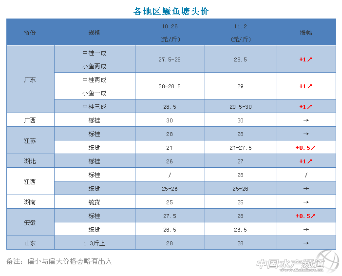 文/圖 水產(chǎn)前沿 李靜 從上周六以來,廣東桂魚價格穩(wěn)中有升,各規(guī)格均上漲了1元/斤左右。今天,廣東塘頭中桂三成的統(tǒng)貨訂29.5-30元/斤,最近幾天價格保持穩(wěn)定,養(yǎng)殖戶持續(xù)觀望。 除了廣東,本周江蘇統(tǒng)貨也上漲了0.5元/斤,湖北標桂上漲了1元/斤,安徽標桂上漲了0.5元/斤,其他地區(qū)暫時保持穩(wěn)定,精養(yǎng)塘出魚量不大,以蟹塘套養(yǎng)的鱖魚為主。 接下來,廣東鱖魚價格走勢主要與養(yǎng)殖戶出魚積極性有關,當下節(jié)日較少,市場銷量有限,如果養(yǎng)戶擔心鱖魚價格下跌而急于出魚,鱖魚價格則有可能會有所回落;如果養(yǎng)戶繼續(xù)惜售,市場行情好轉時,鱖魚價格則有望穩(wěn)步上漲。 本周,餌料魚價格幾乎全線上漲,漲幅最高達0.5元/斤,形勢嚴峻。其中花都泰鯪、廣西麥鯪分別漲了0.5元/斤;高明麥鯪、土鯪、泰鯪,清遠麥鯪、土鯪,三水、肇慶麥鯪分別漲了0.2元/斤;其他地區(qū)也有不同程度漲幅。 |