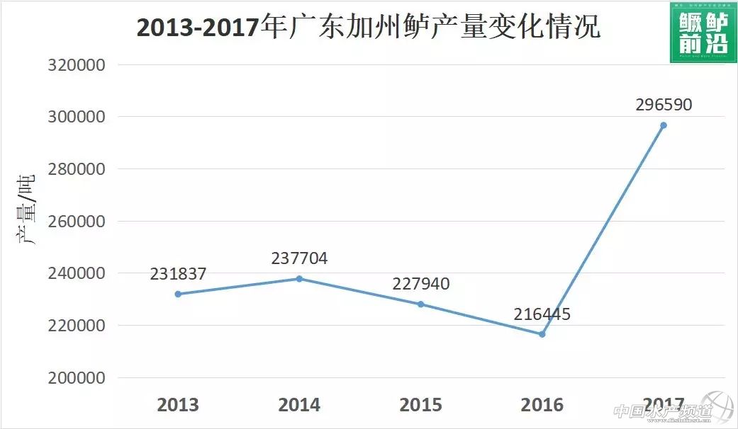 中國水產頻道原創報道, 中國漁業統計年鑒:2017年我國加州鱸產量達45.69萬噸 文/圖 水產前沿 李曉欣 據最新發布的《中國漁業統計年鑒2018》顯示,2017年我國淡水養殖產量為2905.29萬噸,占淡水產品產量的93.01%,比上年增加27.40萬噸、增長0.95%。其中,淡水魚類產量2540.98萬噸,比上年增加0.88萬噸、增長0.03%。 加州鱸產量1年暴增10.96萬噸 注:根據第三次全國農業普查結果,2018年中國漁業統計年鑒將2016年淡水鱸魚(主要是加州鱸)的總產量從374062噸調整為347259噸 2017年我國加州鱸產量達45.69萬噸,相比2016年產量34.73萬噸增加了10.96萬噸,增幅乃淡水魚類最高,達31.57%。 縱觀2013-2017年我國加州鱸產量變化情況,2013-2016年產量一直維持在33-36萬噸之間。值得一提的是,2012-2015年產量逐年增加,而2016年產量34.73萬噸相比2015年35.31萬噸減少了5822噸,到了2017年產量激增。 廣東產量近30萬噸,占全國6成以上 廣東作為加州鱸主產區,產量領跑全國達29.66萬噸,占全國總產量45.69萬噸的64.92%;浙江位居第2,達4.27萬噸;江蘇位居第3,達3.65萬噸,江西位居第4,達2.14萬噸;四川位居第5,達1.75萬噸。湖北、福建、貴州、安徽、湖南分別位居第6至第10,產量均在1萬噸以下。 各地區2013-2017年產量變化 廣東 廣東是加州鱸的主產區,年產量領跑全國,2013-2017之間年產量一直維持20萬噸以上。2013年產量為23.18萬噸,2014年產量為23.77萬噸,相比2013年產量增加了0.59萬噸。2014-2016三年間,加州鱸年產量逐年減少,2015年產量為22.79萬噸,相比2014年產量減少了0.98萬噸;2016年產量為21.64萬噸,相比2015年產量減少了1.15萬噸。到了2017年,廣東加州鱸年產量為29.66萬噸,相比2016年產量猛增8.01萬噸,增幅達37.03%。 浙江 2013-2017年間,浙江加州鱸產量逐年增加。2013-2015年浙江加州鱸產量增長幅度較為平穩,年產量一直位居全國第4,次于廣東、江蘇和江西。2016年產量為2.91萬噸,相比2015年產量2.13萬噸增加了0.77萬噸,年產量躋身全國前三行列,位居第3,次于廣東和江蘇。2017年產量飆升至4.27萬噸,相比2016年產量增加了1.36萬噸,年產量位居全國第2,僅次于廣東。 江蘇 2013-2017年江蘇加州鱸產量一直維持在3.4-3.6萬噸左右,變動幅度不大。2013-2016四年間江蘇加州鱸產量一直位居全國第2,僅次于廣東。到2017年,江蘇加州鱸產量3.65萬噸被浙江4.27萬噸趕超,退居全國第3。 江西 2013-2015年江西加州鱸產量穩步增長,2013年產量達2.02萬噸,2014年產量達2.1萬噸,2015年產量達2.18萬噸,三年間產量一直位居全國第3,次于廣東和江蘇。2016-2017年江蘇加州鱸產量被浙江趕超,退居全國第4。2016年江西加州鱸產量相比2015年產量減少了1372噸,達2.04萬噸;2017年江西加州鱸產量相比2016年增長了942噸,達2.14萬噸。 四川 2013-2017年四川加州鱸年產量逐步增加,并一直穩居全國第5。2013-2016年四川加州鱸產量增長幅度較為平穩,年產量分別為1.1萬噸、1.14萬噸、1.22萬噸和1.24萬噸。2017年四川加州鱸產量出現較大增幅,達1.75萬噸。 湖北 2013-2016年湖北加州鱸年產量穩步增長,分別為3343噸、3558噸、3843噸和4385噸。2017年湖北加州鱸產量相比2016年翻倍增長,達9952噸。 福建 2013-2015年福建加州鱸年產量在1-1.1萬噸之間,2016、2017年產量減少至1萬噸以下,分別為8570噸、9342噸。 貴州 2013-2017年貴州加州鱸產量一直持續增長,產量分別為2479噸、2748噸、4786噸、5481噸和5694噸。其中,2015年增幅最大,相比2014年增加了2038噸。 安徽 2013年安徽加州鱸產量僅816噸,到2014年,安徽加州鱸產量相比2013年增加了約5倍,達4967噸。2015年產量增長至5853噸,為五年中產量最高,相比2014年增加了886噸;2016年產量為5390噸,相比2015年減少了463噸;2017年產量增長至5513噸,相比2016年增加了123噸。 湖南 2013-2015年湖南加州鱸產量一直維持在1500噸左右,分別為1544噸、1433噸和1510噸。到2016年,產量翻倍增長,達3085噸。2017年產量為3579噸,相比2016年增長了494噸。 從各地加州鱸產量變化情況可以看出,2017年產量暴增近11萬噸,廣東(增加8.01萬噸)、浙江(增加1.36萬噸)和江蘇(增加950噸)三個加州鱸主產區是主力,江西、四川、湖北、福建、貴州、安徽和湖南等地區2017年產量相比2016年也有不同幅度的增加,近幾年加州鱸這條魚在全國掀起了養殖熱潮。 從當前的養殖情況來看,預計全國加州鱸產量還將有所增長。產量暴增之下,行情能否維持以及產業能否良好發展便成了所有加州鱸產業從業者需要思考的問題。 注:本文數據來源于2014-2018年中國漁業統計年鑒 【關鍵字】:加州鱸 產量 水產養殖 |