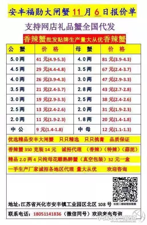 11月6日大閘蟹報價單:興化、常州、高淳、泗洪、鹽城等市場