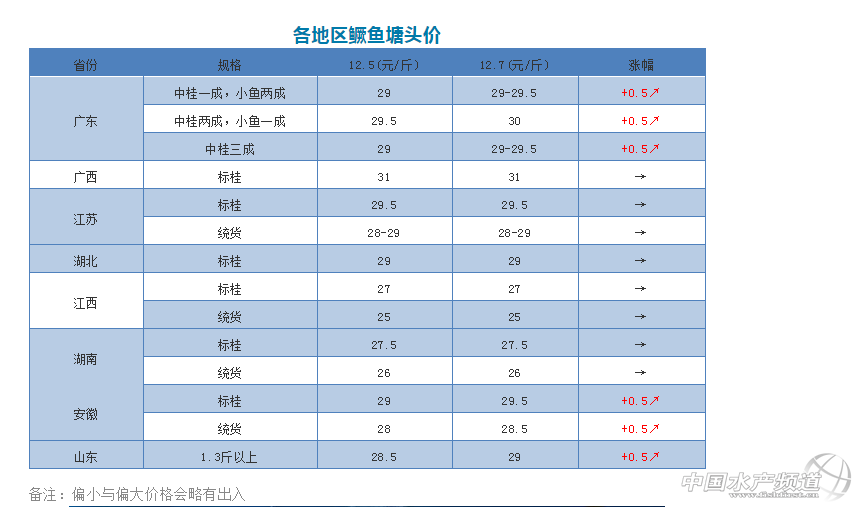 中國水產頻道原創報道,廣東一夜入冬,北方多地大雪,鱖魚價格漲勢明顯 文/圖 水產前沿 李靜 今天是二十四節氣中的大雪,江蘇、安徽、湖南等多地迎來了入冬后的第一場雪。 視頻:今日江蘇無錫大雪場景 受冷空氣影響,鱖魚養戶惜售,今天廣東鱖魚塘頭訂魚價格再漲0.5元/斤,不少地方是30元/斤才給看魚。眼下,雖然塘頭價格穩中有升,市場批發價也略有上浮,但整體來說流通商抓魚風險還是比較高,超過30元/斤虧本可能比較大。 視頻:今日廣東肇慶魚中拋魚打樣 受大雪天氣影響,今天安徽、山東標桂也分別上漲了0.5元/斤,江蘇、江西、湖南、湖北、廣西鱖魚價格預計也將很快上調。各地鱖魚價格有望全線上漲。 這場冷空氣來勢洶洶,部分養戶擔心餌料魚低溫凍死而清塘,導致這兩天餌料魚價格跌幅明顯。三水麥鯪、土鯪、泰鯪分別跌了0.1-0.2元/斤左右;肇慶土鯪跌了0.1元/斤左右;高明麥鯪、土鯪、蘇魚、巴西雕分別跌了0.2-0.3元/斤左右;清遠麥鯪、土鯪、巴西雕分別跌了0.1-0.2元/斤左右;英德麥鯪、土鯪、蘇魚分別跌了0.3-0.4元/斤左右;江門麥鯪跌了0.2元/斤左右;四會麥鯪、土鯪、泰鯪、蘇魚分別跌了0.2-0.4元/斤左右;順德土鯪跌了0.1元/斤左右;其他地區的價格暫時保持穩定。 |