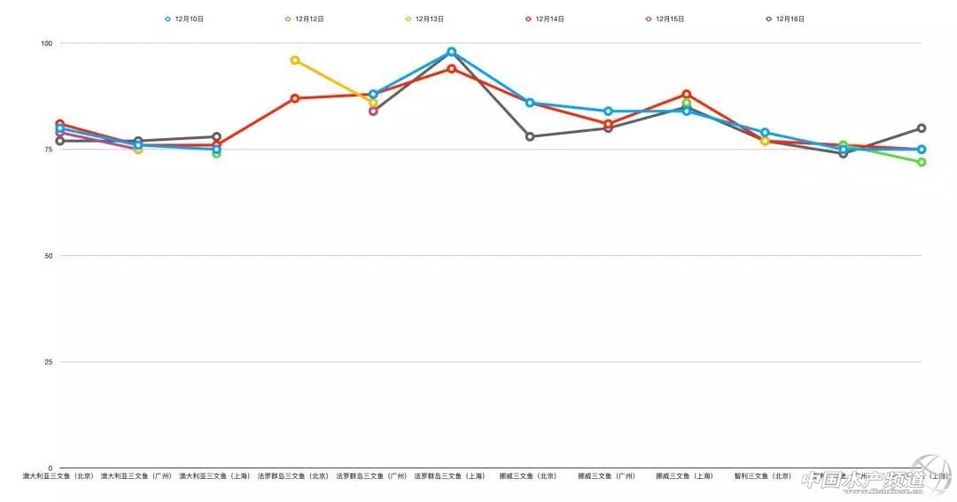 中國水產頻道原創報道, 過去的一周,國內冰鮮三文魚市場總體持穩,部分產區略有下降。上海市場行情比北京、廣州好。 文/ 海鮮指南(seafood-guide)沈基文 過去的一周,國內冰鮮三文魚市場總體持穩,僅部分產區的魚價格略有下降,可能與集中到貨有關。上周國內總體到貨量持續增加,盡管已經快到圣誕節,但冰鮮三文魚行情仍未出現上漲趨勢。進口商/經銷商積極出貨,魚價上漲乏力。 就北京、廣州、上海三個市場來看,上海行情稍好。 12月10日-12月16日各主產區冰鮮三文魚(6Kg+)在北京、廣州、上海各市場價格走勢 昨天(12月16日),北京:澳大利亞(9日生產)小魚報價68元/公斤、大魚77元/公斤,與12月15日報價下降1-2元/公斤;智利(11日生產)大魚77元/公斤;挪威(12日生產)大魚報價78元/公斤; 昨天(12月16日),廣州:澳大利亞(11日生產)小魚70元/公斤、大魚77元/公斤,與12月15日報價上漲2元/公斤;法羅(6日生產)大魚82-84元/公斤,與12月13日報價持平;挪威(10日生產)大魚報價80元/公斤;智利(10日生產)小魚69元/公斤、大魚74元/公斤; 昨天(12月16日)晚間,上海:澳大利亞(13日生產)小魚72元/公斤、大魚78元/公斤,與12月15日相比上漲了2元/公斤;法羅群島(12日生產)大魚98元/公斤;挪威(13日生產)大魚85元/公斤,與12月15日相比下降了2元/公斤;智利(12日)大魚78元/公斤,與12月15日相比上漲了3元/公斤。 詳情請看下圖(12月16日全國批發市場冰鮮三文魚報價): 聲明: 1、本文所提三文魚均指大西洋鮭; 2、報價均為進口商批發價,與零售/餐飲/酒店渠道報價不相等,請勿對號入座; 3、報價僅供參考,報價詳情咨詢請聯系本文作者(海鮮指南 編輯部 沈基文)18620796931 |