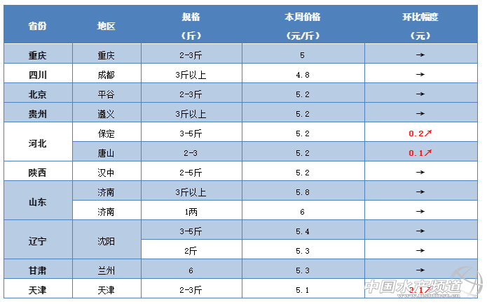 | 中國水產(chǎn)頻道獨(dú)家報(bào)道,最近的草魚行情也是不負(fù)厚望,各地均出現(xiàn)回暖。 文/水產(chǎn)前沿鄭鵬飛 一周要聞 在2018年最后的幾天里,冷空氣著實(shí)把全國給凍了個(gè)徹底,廣東、廣西部分地區(qū)都已經(jīng)下起大雪,氣溫將到5℃左右。最近的草魚行情也是不負(fù)厚望,各地均出現(xiàn)回暖。 最近,珠三角地區(qū)統(tǒng)鯇直奔5元/斤,本周中山地區(qū)大草魚最高上漲0.7元/斤;福建地區(qū)流通商到處找魚,多個(gè)品種魚價(jià)均出現(xiàn)大幅上漲,3斤草魚最高賣到6.1元/斤;華中和華東大部分地區(qū)目前價(jià)格上漲不是很明顯,但是由于大雪封路導(dǎo)致市場無魚可賣,部分市場草魚價(jià)格也是應(yīng)聲上漲。長沙市場草魚一度賣到6元/斤,武漢地區(qū)草魚最新報(bào)價(jià)也上漲0.2元/斤,隨州地區(qū)6斤草魚也賣到7元/斤。 今日行情 華南地區(qū) 受冷空氣影響,本周華南大部分地區(qū)氣溫都降到了5℃左右,最近華南大部分地區(qū)草魚行情出現(xiàn)回暖。其中,珠三角地區(qū)統(tǒng)鯇塘頭價(jià)直奔5元/斤而去,大部分地區(qū)最新報(bào)價(jià)4.9元/斤,較之前上漲0.2元/斤;佛山勒流地區(qū)2斤以上的草魚可以賣到6元/斤;廣州地區(qū)統(tǒng)鯇最新報(bào)價(jià)也漲到4.8元/斤,較上周上漲0.3元/斤;中山地區(qū)大草魚最大漲幅達(dá)到0.7元/斤,統(tǒng)鯇最新報(bào)價(jià)也漲到4.9元/斤。本周廣西貴港地區(qū)4-6斤草魚塘頭賣到5.5元/斤,較上周上漲0.2元/斤,其他地區(qū)草魚行情暫時(shí)沒有出現(xiàn)明顯變化。 中山:受冷空氣影響,最近中山地區(qū)草魚行情整體出現(xiàn)回暖。其中,統(tǒng)鯇漲了0.2元/斤,大部分地區(qū)最新報(bào)價(jià)4.9元/斤。從養(yǎng)殖戶了解到,本周中山部分地區(qū)大草魚上漲了0.7元/斤,近期行情看好。 江門:本周江門地區(qū)的草魚行情也是有所回升。其中,3斤左右草魚的賣4.9元/斤,4斤以上的賣5.4-5.5元/斤。臺(tái)山地區(qū)最新塘頭價(jià)賣到4.7元/斤,價(jià)格也是出現(xiàn)了上漲。 肇慶:本周肇慶地區(qū)草魚塘頭價(jià)也上升了0.2元/斤,超市鯇最新報(bào)價(jià)4.2元/斤,5斤以上的賣6.4元/斤。 梅州:據(jù)業(yè)內(nèi)人士介紹,目前梅州地區(qū)2-4斤的草魚最新報(bào)價(jià)5.1-5.2元/斤,最近走量越來越大。 茂名:目前茂名地區(qū)大草魚價(jià)格稍微好轉(zhuǎn),小草魚還是老樣子。 佛山:本周佛山地區(qū)草魚價(jià)格也是出現(xiàn)上漲。從養(yǎng)殖戶了解到,順德勒流地區(qū)2斤以上的草魚可以賣到6元/斤。 廣州:據(jù)流通商介紹,目前廣州的地區(qū)草魚價(jià)格也是漲到4.8元/斤,相比上周漲0.3元/斤。 廣西:本周廣西地區(qū)草魚行情整體辯護(hù)不大,部分地區(qū)價(jià)格也是有小幅回升。從養(yǎng)殖戶了解到,目前貴港地區(qū)4-6斤的草魚最新報(bào)價(jià)5.5元/斤,較上周上漲0.2元/斤;桂林地區(qū)報(bào)價(jià)還是5-5.3元/斤,價(jià)格暫時(shí)沒有太大變化;來賓地區(qū)目前草魚行情暫時(shí)沒有出現(xiàn)明顯變化。 華中地區(qū) 本周華中大部分地區(qū)都下起了大雪,草魚行情整體出現(xiàn)回暖。江西地區(qū)草魚行情整體變化不大,了解到除贛州和南昌地區(qū)草魚價(jià)格有小幅回暖,銷量增加,其他地區(qū)價(jià)格暫時(shí)還沒有出現(xiàn)上漲。湖南常德、岳陽、益陽有部分地區(qū)草魚價(jià)格出現(xiàn)小幅上漲,下雪的時(shí)候長沙市場草魚賣到了6元,其他地區(qū)暫時(shí)沒有出現(xiàn)明顯變化。由于大雪封路,市場無魚,本周湖北地區(qū)草魚整體行情呈上漲趨勢。隨州地區(qū)6斤草魚最新塘頭價(jià)賣到7元/斤;武漢地區(qū)草魚價(jià)格較上周上漲0.2元/斤。 江西:本周江西地區(qū)草魚整體變化還是不大,有部分地區(qū)價(jià)格開始有小幅上漲。其中,南昌地區(qū)漲了0.1-0.2元/斤,2-3斤的草魚最新報(bào)價(jià)4.3-4.7元/斤;贛州地區(qū)3斤的網(wǎng)箱草魚已經(jīng)漲到5.1元/斤,最近銷量大增。其他地區(qū)整體行情暫時(shí)還沒有出現(xiàn)明顯回升,其中宜春地區(qū)3斤以上的草魚賣4.2-4.3元/斤,4斤以上的賣4.6元/斤;樟樹地區(qū)的草魚行情還是老樣子,養(yǎng)殖戶表示希望過幾天外省的車過來價(jià)格能有所上漲;目前吉安地區(qū)3斤的草魚賣4.5元/斤,大草魚賣5.3元/斤,暫時(shí)魚還是不太好賣。 湖南:本周湖南大部分地區(qū)都下了大雪,道路不通,養(yǎng)殖戶都沒有怎么賣魚,目前整體魚價(jià)行情還不是很明朗,暫時(shí)未有明顯變化,部分地區(qū)有小幅上漲。其中,下雪的時(shí)候長沙市場草魚賣到了6元,岳陽地區(qū)的草魚行情出現(xiàn)小幅回升,塘頭價(jià)最高賣到4.8元/斤。益陽地區(qū)2.5斤的草魚還是維持在4.3元/斤,大規(guī)格價(jià)格有所回升。常德部分地區(qū)價(jià)格有小幅上漲。有業(yè)內(nèi)人士表示,最近湖南已經(jīng)取消了寒潮預(yù)警,到目前為止湘陰地區(qū)仍未見到價(jià)格回升。今天長沙水渡河市場外省草魚特別多,價(jià)格行情不是很好,種種跡象表明,隨著寒潮的緩和,草魚價(jià)格會(huì)有下降的可能,希望養(yǎng)殖戶抓住時(shí)機(jī),見好就收。 湖北:由于大雪封路,市場無魚,本周湖北地區(qū)草魚整體行情呈上漲趨勢。其中,隨州草魚漲了,最新報(bào)價(jià)7元/斤;武漢地區(qū)草魚價(jià)