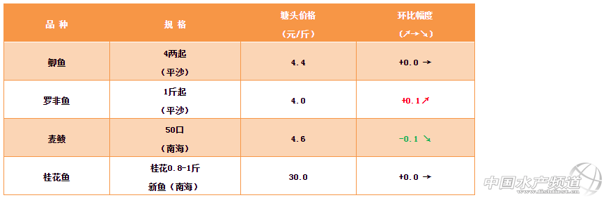 摘要: 中國水產頻道原創報道,2019年1月4日珠三角地區鯽魚、羅非魚、麥鯪、桂花魚塘頭價行情簡析