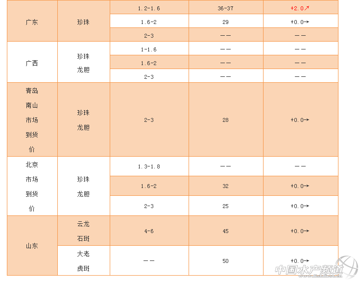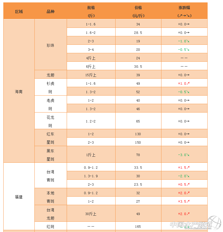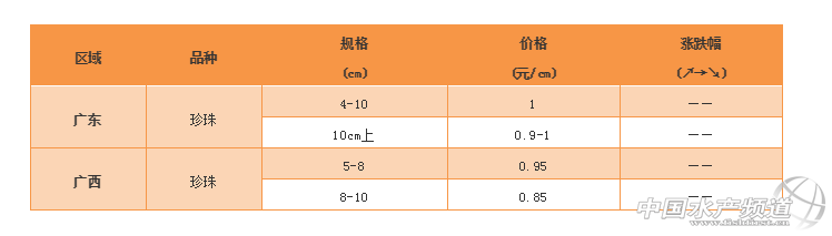 福建青斑和龍膽、廣東小規格珍珠價格均上漲