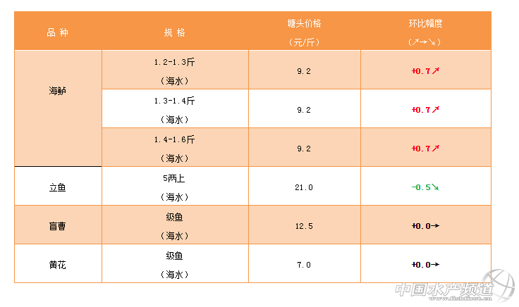 海鱸價格上漲0.7元/斤,后期預計會微跌——2019年1月18日海鱸、立魚、盲曹、黃花塘頭價 ...