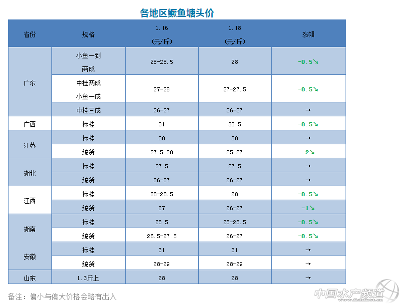 銷量萎縮,鱖魚價格全線下跌!丨2019年1月18日鱖鯪塘頭價