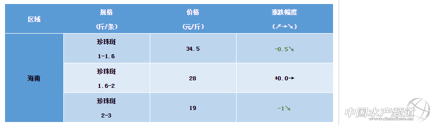 2019年1月19日海南地區石斑魚塘頭價行情簡析