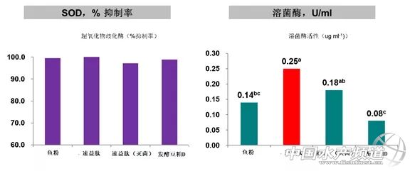 中國水產頻道獨家報道,2017年,全球對蝦總產量超過430萬噸,同比增長約7.5%,其中中國、印度、厄瓜多爾、越南、泰國、印尼等六大主產國產量超過全球對蝦產量的80%。中國養殖對蝦產量中80%以上來自南美白對蝦。到目前為止,南美白對蝦已經在我國發展了20多個年頭,已形成一條龐大的產業鏈,然而近幾年南美白對蝦養殖病害層出不窮。據全球水產養殖聯盟調查數據(圖1)顯示,疾病和養殖成本是目前全球南美養殖面臨的主要的困難和挑戰。如何提高南美白對蝦養殖的存活率,降低養殖成本,是提高我國南美白對蝦養殖國際競爭力的必要途徑! 文/ 希杰集團生化事業部-best protein 圖1.全球蝦產業關注的前十大熱點問題 希杰集團生化事業部借助國際領先的生物發酵技術,在國內甚至全球獨創性研發和生產單一芽孢桿菌全程有氧發酵蛋白粉——速益肽(Soytide)。速益肽是芽孢桿菌有氧固態發酵豆粕產品,芽孢桿菌生長快、蛋白酶分泌能力強,是豆粕發酵的首選菌株,芽孢桿菌發酵產品具備抗營養因子降解較為徹底(圖2)、粗蛋白含量較高、消化吸收率高,水穩定性好(圖3)的特點。速益肽含有107耐高溫芽孢桿菌,經高溫制粒甚至膨化后仍有活菌(圖4),水產動物采食后,通過改善其腸道健康,增強免疫力,改善水質,降低對蝦死亡率。通過在南美白對蝦養殖中的實踐,我們發現速益肽在對蝦養殖中替代魚粉,降低養殖成本;增強對蝦腸道健康、降低死亡率和改善水質方面有顯著效果,值得您嘗試! 圖2.速益肽抗原蛋白降解情況(SDS-PAGE電泳) 圖3.速益肽與傳統發酵豆粕水穩定性測試 圖4.產品的芽孢桿菌可以忍受強烈的熱制粒環境 速益肽替代魚粉的可行性研究 1、試驗設計 選擇480只健康南美白對蝦幼蝦,初始重0.5g,每個飼糧處理3個重復,每個重復40只蝦。幼蝦飼糧處理包括對照組(魚粉組)和三個試驗組(速益肽,速益肽(滅菌)和發酵豆粕D分別替代部分魚粉組),飼糧配方見表1。試驗采用飽飼,每天投喂4次,試驗期8周。試驗環境27.0±1℃,配備海水循環裝置(鹽度33ppt)。 表1.試驗飼糧組成 2、試驗結果 2.1速益肽對幼蝦生長性能的影響 不論是否滅菌,速益肽都成功替代了9個點的魚粉,其中不滅菌的速益肽組較其他組還顯著提高了南美白對蝦的增重和特定生長速率(P<0.05),滅菌后的速益肽仍在一定程度上改善了南美白對蝦的生產性能。結果表明,速益肽對南美白對蝦生產性能的改善得益于益生菌和產品抗原降解等方面。 圖5.速益肽替代魚粉對南美白對蝦生產性能的影響 2.2速益肽對幼蝦非特異性免疫的影響 各組之間超氧化物歧化酶抑制率無顯著差異(P>0.05),但是速益肽組幼蝦的溶菌酶活性顯著高于魚粉和發酵豆粕D組(P<0.05)。其中速益肽(滅菌)組的溶菌酶活性顯著高于發酵豆粕D組,同時較魚粉組也得到一定程度的改善(圖6)。 圖6.速益肽替代魚粉對南美白對蝦非特異性免疫的影響 速益肽對南美白對蝦存活率及水質改善的應用研究 1、試驗設計 選擇120只健康南美白對蝦,初重為4.08+0.12g,每組3個重復,每個重復10只幼蝦。飼糧處理為對照組、對照&益生菌組(對照組(+))、魚粉替代組(速益肽組)、魚粉替代&益生菌組(速益肽(+)),其中益生菌來源于某商業品牌B(表2)。試驗采用飽飼,每天投喂4次,試驗期4周。試驗環境27.0±2℃,配備海水循環裝置(鹽度33ppt)。 表2.試驗設計 “X”表示未添加;“O”表示添加 2、試驗結果 2.1速益肽對幼蝦存活率的影響 在試驗的第4周,停止更換試驗用水,各組南美白對蝦死亡率增加,其中對照組死亡率最高,高達50%,顯著高于其他三組(P<0.05)。但速益肽組、速益肽(+)、對照組(+)存活率沒有出現顯著差異(P>0.05),速益肽組存活率高于60%,稍高于對照組(+)的存活率(圖5)。 圖7.速益肽對南美白對蝦存活率影響 2.2速益肽的調水效果 一周以后速益肽組和速益肽(+)組的水中NO2濃度顯著低于對照組(P<0.05),同時速益肽組中的芽孢桿菌對水中NO2濃度的控制好于本試驗中使用的某商業品牌B。試驗第2周、第4周速益肽組和速益肽(+)組每毫升水中芽孢桿菌數量顯著高于對照組(P<0.05)。 圖8.速益肽對南美白對蝦養殖中NO2-N含量的影響 圖9.速益肽對南美白對蝦養殖環境中芽孢桿菌數量的影響 結論 1、速益肽對南美白對蝦生產性能的改善得益于產品中的益生菌和抗原降解等多方面。 2、速益肽通過改善南美白對蝦養殖水質環境,同時增強免疫力,提高南美白對蝦存活率。 |