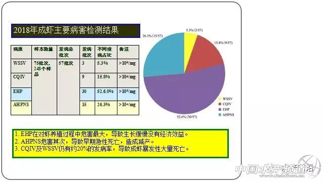 文/圖 水產(chǎn)前沿 吳佳輝 中國水產(chǎn)頻道原創(chuàng)獨(dú)家報(bào)道,這些年,對蝦早期死亡綜合癥(EMS)又認(rèn)為是急性肝胰腺壞死癥/病(AHPNS/AHPND),它的出現(xiàn)已經(jīng)造成多個(gè)養(yǎng)蝦大國不同程度的損失。2019年1月份,自然資源部第三海洋研究所楊豐研究員公布了一項(xiàng)數(shù)據(jù),數(shù)據(jù)中顯示,EHP在對蝦養(yǎng)殖過程中危害最大,導(dǎo)致生長緩慢沒有經(jīng)濟(jì)效益。而AHPNS危害其次,導(dǎo)致早期急性死亡,造成減產(chǎn)。 楊豐研究員分享的檢測結(jié)果數(shù)據(jù) 楊豐研究員在第七屆中國養(yǎng)蝦高手年會上介紹,2015年羅竹芳教授和Lightner教授合作報(bào)道了質(zhì)粒pVA1上的2個(gè)基因PirA和PirB編碼了2個(gè)毒力蛋白。自然缺乏Pir基因或人為敲除Pir基因,導(dǎo)致菌株明顯失去致病力,證明毒素蛋白PirA和PirB是引起AHPNS的關(guān)鍵。 除了副溶血弧菌外目前已發(fā)現(xiàn)哈維氏弧菌,坎氏弧菌,歐文斯弧菌等多種弧菌能攜帶這種含Pir毒素基因的質(zhì)粒。此外,研究人員發(fā)現(xiàn)缺少PirA或PirB都會失去強(qiáng)致病性。為此世界動(dòng)物衛(wèi)生組織OIE檢測手冊已明確表示:要檢測出“Pir毒素基因”才能定義“急性肝胰腺壞死病AHPND”。也就是說AHPNS/AHPND由產(chǎn)毒素弧菌引起。 EMS對泰國養(yǎng)蝦業(yè)已影響甚微 2012年,泰國對蝦EMS全面暴發(fā)以來,養(yǎng)殖戶養(yǎng)殖信心不足。有泰國教授表示,在爆發(fā)EMS以前,泰國有15萬萊(1萊=1600平方米)的養(yǎng)殖面積,年產(chǎn)南美白對蝦量為40萬噸/年。目前,泰國的養(yǎng)殖面積只有8萬萊,年產(chǎn)量25萬噸。 雖然泰國的養(yǎng)殖面積減少,不過,Suchart Farm的顧問Kob Patipon-Patrick表示,最近幾年,EMS的影響已經(jīng)沒有剛開始爆發(fā)時(shí)那么大,養(yǎng)殖場的養(yǎng)殖成功率還是比較高的。正大卜蜂食品副總裁Robins McIntosh也曾表示,“為確保不帶病原,無節(jié)幼體在高級育苗車間里培育,賣給養(yǎng)蝦戶前,還要通過弧菌和孢子蟲的抗性測試。因‘早期死亡綜合癥(EMS)’導(dǎo)致的養(yǎng)殖失敗率,從以前的40%,降到了現(xiàn)在的0.1%。” Kob Patipon-Patrick認(rèn)為EMS的影響甚微除了泰國嚴(yán)格的苗種培育要求,也得益于標(biāo)粗場的營養(yǎng)強(qiáng)化與養(yǎng)殖戶投大苗的理念。“苗種在達(dá)到P40之前,風(fēng)險(xiǎn)是由育苗場和標(biāo)粗場來承擔(dān)的。蝦苗規(guī)格達(dá)到P40再投放入養(yǎng)殖場,其環(huán)境適應(yīng)力增強(qiáng),抵抗力也較強(qiáng),出現(xiàn)EMS的概率就極大降低。” 標(biāo)粗大苗,被國外同行理解為“nursery”,即一個(gè)營養(yǎng)強(qiáng)化、體質(zhì)強(qiáng)化的過程,這是常規(guī)養(yǎng)殖條件下所不具備的。同時(shí),標(biāo)粗大苗的過程,還是一個(gè)病害排查的過程。也就是說,一旦蝦苗攜帶病原,那么在這個(gè)20-30天的大苗標(biāo)粗過程可以盡早發(fā)現(xiàn),而不是將隱患留給養(yǎng)殖戶。 苗種培育至P40 泰國蝦苗企業(yè)苗種的生產(chǎn)規(guī)格一般達(dá)到P12,中國的蝦苗規(guī)格以P5-P10為主。在培育過程中,Suchart Farm一天投喂6-8餐,只投喂浮游植物(角毛藻、海鏈藻)、浮游動(dòng)物(英偉豐年蟲)、人工餌料(英偉人工餌料)。 培育到P8,則進(jìn)行抽樣檢測。在生產(chǎn)前,蝦苗場需要向政府提交資料,匯報(bào)年生產(chǎn)量,并交納一定數(shù)額的管理費(fèi)。苗種培育到P8規(guī)格,則向第三方檢測機(jī)構(gòu)提交檢測樣品進(jìn)行檢測。要求總體的長度大于7毫米、個(gè)體間的差異小于5%、無掛臟、個(gè)體完整、肝胰臟油滴完整、蝦體重的黃色弧菌含量不能超過1000cfu /g ,不能攜帶綠弧菌。 總體的長度大于7毫米、個(gè)體間的差異小于5% 左圖:體表寄生蟲對比 中圖:尾節(jié)腸道與肌肉比等于4:1 右圖:油滴情況對比 苗種培育至P12,則進(jìn)入標(biāo)粗階段。標(biāo)粗池先用30PPM的有效氯含量進(jìn)行殺菌消毒,再干燥、清洗。用30PPM的有效氯含量進(jìn)行水處理,沉淀、過濾。 P12標(biāo)粗到P40的密度為6000尾/m3。每天投喂4-6餐,14天達(dá)到2000尾/斤;21天1500尾/斤;28天達(dá)到P40,在750-1000尾/斤。成活率在9成以上。 大苗培育密度,受水質(zhì)和餌料制約 大家都知道,投喂常規(guī)蝦片和大鹵蟲等生物餌料標(biāo)粗,水質(zhì)容易惡化。國內(nèi)標(biāo)粗P40大苗的密度通常控制在2,000尾/m3以下。如果能將密度提高,勢必會提高水體利用率,則需要更加高效、對水質(zhì)污染少、營養(yǎng)更加全面的餌料。例如,此次泰國走訪看到,英偉微膠囊餌料標(biāo)粗到P40大苗,密度在每噸水6,000尾以上;而育苗場從幼體培育到P12,主要投喂豐年蟲幼體和微膠囊餌料,而不是大量依賴蝦片,全程不需要倒池子,氨氮也不高。 同時(shí),大鹵蟲、輪蟲等生物餌料,的確在很多地區(qū)容易獲得,成本非常低,但是不可避免的帶來疾病隱患。作為苗種標(biāo)粗環(huán)節(jié),生物安全防控應(yīng)該被高度重視。 大苗運(yùn)輸難度大,要做好這些措施 Suchart Farm用桶打包運(yùn)輸,1桶水大概120升。運(yùn)輸過程,Suchart Farm調(diào)節(jié)PH到8.8-9.0且提高水體總堿度。原因在于總堿度高有利于減少蝦蛻殼,且能夠提高水體的緩沖能力。水體中Ca和Mg的比例調(diào)節(jié)為1:3,有利于應(yīng)對蝦的蛻殼。并每2小時(sh