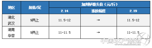 | 中國水產頻道原創報道, 文/圖 水產前沿 李曉欣 今天是元宵佳節,加州鱸塘頭價卻沒有應節上漲。今天產區加州鱸塘頭價基本持穩,廣東佛山魚價回落了0.2元/斤,主要是隨著氣溫回升,近期佛山清塘準備育苗的養戶增多,出魚較為集中,導致魚價走低。隨著春節行情過去,各地銷量恢復正常水平,元宵前銷量亦沒有明顯上升,多地行情持穩。業內人士建議養戶根據自身情況合理安排時間錯峰出魚,避免集中上市。 產區加州鱸塘頭價及行情簡析 華南地區 廣東佛山:今天佛山8兩上報價8.8元/斤,1斤上報價9元/斤,相比14日價格下跌了0.2元/斤。據悉,目前佛山區域超5成養戶已經投苗,近期順德杏壇和外圍區域很多養戶在清塘準備育苗,7兩、8兩上的魚大量集中上市,導致魚價走低。 廣西南寧:南寧1斤上加州鱸塘頭價維持在12-12.5元/斤,當地達上市規格的存魚量還是比較少,養戶出魚意愿不高,當地養戶多到廣東地區拉魚。 華東地區 浙江湖州:今天湖州8兩上加州鱸報價10元/斤,統貨價格8-9元/斤,行情變動不大,沒炮頭的中子魚較不暢銷。 江蘇吳江:吳江7兩上報價9.5元/斤,8兩上10元/斤,9兩上10.5元/斤。目前吳江加州鱸存塘量在5成以上,養戶出魚積極性一般,流通商多到周邊的湖州地區或南下廣東收魚。 華中地區 湖北武漢:武漢9兩上加州鱸塘頭價維持在11.5-12元/斤左右,近期受雨雪天氣影響,當地養戶出魚積極性不高,預計后市魚價或會小幅上漲。 湖南華容:今天華容9兩上加州鱸報價11-11.5元/斤,由于魚價未達預期,當地養戶出魚意愿不大,元宵前當地走量沒有較大增加。 西南地區 四川成都:今天成都9兩上加州鱸塘頭報價12元/斤,價格不變。近期氣溫回升,當地部分養戶想趕在產卵季前再出一網魚,出魚積極性較高。 |