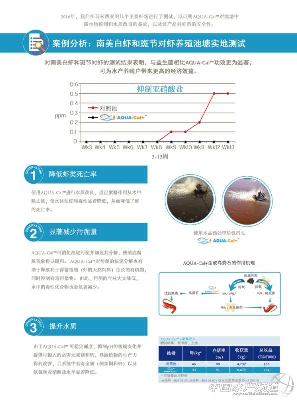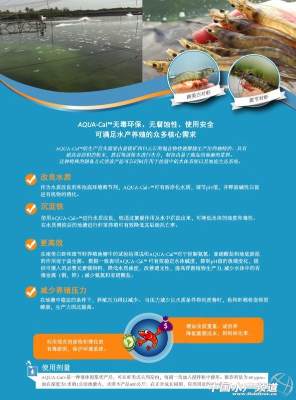 近年來,我們大力開展國際科技合作,此次與澳大利亞Calix公司合作推廣AQUA-Cal+TM新型礦物質水質底質改良劑,將大大提升水產動物的健康福利。AQUA-Cal+TM的主要成分是“蜂窩狀”的氫氧化鎂水合而成的60%固體漿料,呈液體泥漿狀。“蜂窩狀氫氧化鎂”具有約50%的孔隙率和300-350m2/g的表面積,具有高效生物學活性。