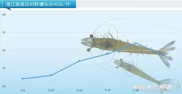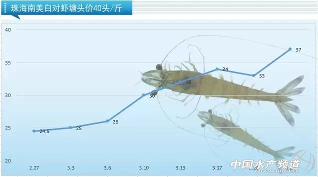 | 中國水產頻道報道, 文/圖 水產前沿 植銀素 本周行情 從本周的蝦價走勢圖可以看出,對蝦價格漲勢并未減弱。廣東、福建兩大冬棚蝦產區存塘蝦已經所剩無幾,珠海、中山漲幅超4元/斤,江門地區40頭蝦對比上周同期漲7元/斤,高達38元/斤。 據江門當地一位蝦中介紹,現在收蝦報價都得提高一點,好讓養殖戶出蝦,但是現在價格已經不是問題,主要是沒蝦!叭蔽r,現在沒蝦收,只能收一天是一天!彼f道。近期亦有不少北方蝦中打聽南方蝦價行情,山東日照地區報價員表示:“對蝦一天一個價,天天都在漲,25頭蝦已經賣到50元/斤!” 珠海 40頭37元/斤,50頭35元/斤。珠海存塘量非常低,蝦價持續高漲,養殖戶表示現在在珠海已經很少見到有收購商,蝦中都已經到陽江找蝦了。 中山 35頭38元/斤,50頭33元/斤,60頭30元/斤。中山地區本周漲幅達到4元/斤,存量和珠海情況相同,有價無蝦是珠三角地區普遍情況。 江門 40頭38元/斤,50頭35元/斤,60頭30-32元/斤。江門地區收購商表示現在江門地區已經無蝦可抓,即使是100條的小蝦都有20元/斤的報價,存塘都是小蝦。 汕頭 本周蝦價30頭37元/斤,40頭35元/斤,50頭31元/斤。汕頭地區目前存量慢慢消耗,價格上漲較快,目前40-50頭的規格比較受歡迎。 漳州 本周蝦價30條40元/斤,40頭36元/斤,50頭33元/斤,60頭30元/斤。對比上周,漳州40頭蝦價格上漲4元/斤,持續減少的存塘量讓價格上漲再加速。 湛江 徐聞地區高位池今日蝦價40頭30元/斤,50頭25元/斤。湛江地區的價格相較上周同期表現較為穩定,存量慢慢見底,預計后期價格上漲。 |
