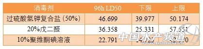 | 中國(guó)水產(chǎn)頻道報(bào)道, 過(guò)硫酸氫鉀復(fù)合鹽的安全性到底有多高?是否可以在水產(chǎn)養(yǎng)殖動(dòng)物幼苗期使用?這不是想當(dāng)然的事情,這需要我們至少在試驗(yàn)室做出相關(guān)數(shù)據(jù),才能回答養(yǎng)殖戶(hù)、經(jīng)銷(xiāo)商以及諸多客戶(hù)的心中疑問(wèn),同時(shí)只有通過(guò)數(shù)據(jù)研究,才是能更好推廣此類(lèi)產(chǎn)品。 連云港永榮生物科技有限公司 趙海永 2016年連云港永榮生物科技有限公司通過(guò)西南大學(xué)漁業(yè)綜合技術(shù)實(shí)驗(yàn)室檢測(cè)了50%過(guò)硫酸氫鉀復(fù)合鹽產(chǎn)品的安全性,寫(xiě)出了《一種漁藥對(duì)四種水產(chǎn)養(yǎng)殖動(dòng)物幼苗的急性毒性研究》,文中指出,永榮生物50%的過(guò)硫酸氫鉀復(fù)合鹽產(chǎn)品對(duì)體長(zhǎng)1.5±0.3 cm南美白對(duì)蝦蝦苗的安全濃度在3.35mg/L。2017年我們繼續(xù)追加費(fèi)用進(jìn)行配方的提升,在11月份,我們將50%的過(guò)硫酸氫鉀復(fù)合鹽產(chǎn)品在廈門(mén)集美大學(xué)水產(chǎn)學(xué)院,由廈門(mén)市漁用藥物工程技術(shù)研究中心對(duì)其安全性進(jìn)行研究,文中指出永榮生物提供的50%過(guò)硫酸氫鉀復(fù)合鹽產(chǎn)品對(duì)體長(zhǎng)0.8-1.0cm南美白對(duì)蝦蝦苗的安全濃度在4.67mg/L,即我們不斷的進(jìn)行調(diào)整,不斷的將永榮過(guò)硫酸氫鉀復(fù)合鹽的安全濃度給予提升。 三種消毒劑對(duì)蝦苗的毒性試驗(yàn) 吳少坤,林茂 集美大學(xué)水產(chǎn)學(xué)院 廈門(mén)市漁用藥物工程技術(shù)研究中心 針對(duì)過(guò)硫酸氫鉀復(fù)合鹽(50%)、10%聚維酮碘溶液和20%戊二醛三種消毒劑,根據(jù)2ppm和20ppm的預(yù)實(shí)驗(yàn)結(jié)果,設(shè)置各自合適的的濃度梯度檢測(cè)其對(duì)蝦苗(南美白對(duì)蝦)浸泡96h后的死亡率,以此計(jì)算三種消毒劑96 h的LD50。試驗(yàn)結(jié)果表明,過(guò)硫酸氫鉀復(fù)合鹽(50%)的LD50值最高為46.7 mg/L;其次為20%戊二醛和10%聚維酮碘溶液分別為36.4 μL/L和22.8 μL/L。 關(guān)鍵詞:蝦苗;南美白對(duì)蝦;消毒劑;LD50 消毒劑在水產(chǎn)養(yǎng)殖當(dāng)中廣泛被使用,而市面上各種消毒劑產(chǎn)品參差不齊,消毒效果不佳和毒性強(qiáng),給養(yǎng)殖者帶來(lái)不少的養(yǎng)殖風(fēng)險(xiǎn)。在南美白對(duì)蝦的育苗和養(yǎng)殖過(guò)程當(dāng)中,經(jīng)常使用到各種各樣的消毒劑,本次試驗(yàn)通過(guò)計(jì)算三種消毒劑96h的LD50值,研究過(guò)硫酸氫鉀復(fù)合鹽(50%)、聚維酮碘溶液和20%戊二醛等三種消毒劑對(duì)蝦苗的毒性。 1、材料 1.1 消毒劑 過(guò)硫酸氫鉀復(fù)合鹽(50%)(連云港永榮生物)、10%聚維酮碘溶液和20%戊二醛。 1.2 試驗(yàn)對(duì)象 蝦苗來(lái)源于貝向明蝦苗公司,規(guī)格在0.8~1cm,暫養(yǎng)于集美大學(xué)水產(chǎn)學(xué)院養(yǎng)殖動(dòng)物房80L玻璃缸中。浸浴用藥時(shí)以8L收納盒分組養(yǎng)殖。期間水溫28℃左右,水源來(lái)自集美大學(xué)水產(chǎn)學(xué)院海水試驗(yàn)場(chǎng),鹽度35。 2、方法 2.1 三種消毒劑對(duì)蝦苗的毒性試驗(yàn) 三種實(shí)驗(yàn)消毒劑以2ppm和20ppm劑量進(jìn)行浸泡和毒性預(yù)測(cè),之后根據(jù)預(yù)測(cè)結(jié)果設(shè)置合適的濃度梯度開(kāi)展毒理學(xué)實(shí)驗(yàn)。毒理實(shí)驗(yàn)共5組3個(gè)平行:過(guò)硫酸氫鉀復(fù)合鹽(50%)、10%聚維酮碘溶液、20%戊二醛以及空白對(duì)照組。蝦苗分組暫養(yǎng)3d后,取3種實(shí)驗(yàn)消毒劑配置為不同的濃度梯度加入到相應(yīng)組別的養(yǎng)殖水中。給藥后每天對(duì)蝦苗死亡數(shù)量進(jìn)行統(tǒng)計(jì),記錄最終96h后的死亡總數(shù)和蝦苗剩余數(shù)量。 2.2 LD50計(jì)算方法 以消毒劑劑量為協(xié)變量,對(duì)應(yīng)的存活記錄每種消毒劑實(shí)驗(yàn)和96h內(nèi)蝦苗死亡數(shù)量。濃度作為協(xié)變量,濃度梯度的蝦苗總數(shù)作為觀測(cè)值匯總,蝦苗死亡數(shù)作為響應(yīng)頻率,采用SPSS18.0回歸分析中的Probit模型計(jì)算96h的LD50。 3、結(jié)果 3.1 三種消毒劑不同劑量浸浴下蝦苗的死亡率 收集三種消毒不同濃度梯度下,24、48、72、96h的死亡蝦苗數(shù),并統(tǒng)計(jì)最終剩余蝦苗的數(shù)量。具體數(shù)據(jù)如表1~3,趨勢(shì)圖如圖1。 表1 過(guò)硫酸氫鉀復(fù)合鹽(50%)不同劑量下蝦苗的死亡率 表2 10%聚維酮碘不同劑量下蝦苗的死亡率 表3 20%戊二醛不同劑量下蝦苗的死亡率 圖1 三種消毒劑對(duì)南美白對(duì)蝦蝦苗-死亡率曲線圖 3.2 三種消毒劑在蝦苗中96h的LD50 將試驗(yàn)數(shù)據(jù)匯總后,采用SPSS18.0回歸分析中的Probit模型,計(jì)算三種消毒劑在蝦苗中的LD50值(表4),LD50值越大,毒性越小。 表4 三種消毒劑在蝦苗中的LD50(95%置信度)(mg/L或μL/L) 以上產(chǎn)品均為連云港永榮生物科技有限公司的獨(dú)有配方。同時(shí),稍遺憾的就是在過(guò)硫酸氫鉀復(fù)合鹽的研究方面,我們還缺乏長(zhǎng)期的毒性試驗(yàn)研究,這個(gè)應(yīng)該會(huì)做為我公司下一步的研究方向,也希望能系統(tǒng)的、負(fù)責(zé)任的回答養(yǎng)殖戶(hù)的疑惑之所在。 2019年產(chǎn)品 保真承諾書(shū) |