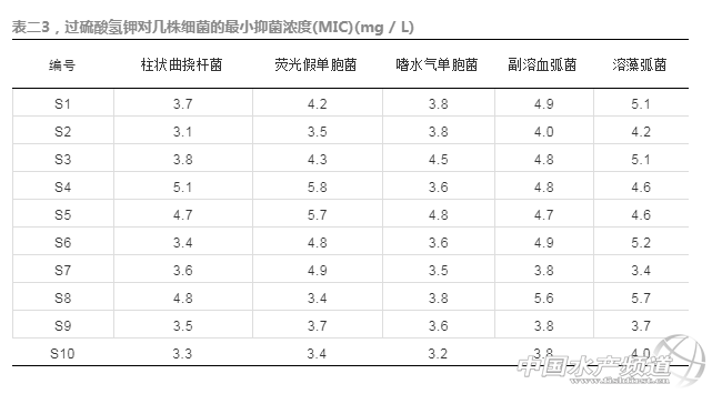 | 中國水產頻道報道, 前言:過硫酸氫鉀復合鹽高含量產品可做為消毒劑使用,但其相對傳統消毒劑到底具備什么樣的優勢?其針對普通的水產動物病原菌在相關效果上到底表現如何?為了科學的回答這些問題,連云港永榮生物科技有限公司委托西南大學做出相應數據,希望對同行及相關養殖戶有所借鑒。 過硫酸氫鉀對五種水產動物病原菌的敏感性研究 魚類繁殖與健康養殖中心 西南大學(榮昌校區)| 重慶402460 摘要:不同濃度條件下,試驗了過硫酸氫鉀對5種水產動物常見病原菌,包括柱狀曲撓桿菌、熒光假單胞菌、嗜水氣單胞菌、副溶血弧菌、溶藻弧菌的藥物敏感性。結果表明:過硫酸氫鉀對這幾種病原菌的MIC為3.1~5.7mg/L之間,MBC為4.5~8.3mg/L之間。 關鍵詞:過硫酸氫鉀;病原菌;藥物敏感性 1、材料與方法 1.1 材料 1.1.1 菌種 試驗菌株選擇水產養殖魚類的常見致病菌,試驗菌株取自農業部漁業動植物病原庫。 1.1.2 試驗藥品 試驗藥品"過硫酸氫鉀"本試驗所使用的過硫酸氫鉀由連云港永榮生物科技有限公司提供,具體產品信息見表1。 表一, 過硫酸氫鉀產品信息 1.1.3 培養基 選用肉汁胨培養基:蛋白胨10g,牛肉膏5g,NaCl 5g,H₂O 1000mL,pH 7.2~7.4,1.05 kp滅菌20min。 1.2 方法 1.2.1 菌懸液的制備 將各菌株接種到已滅菌的培養基上,培養24-48h后刮取菌苔,置于無菌生理鹽水中搖勻,離心2次(4500r/min,每次20min),收集沉淀,重懸于無菌生理鹽水中,參照麥氏比濁管將菌液稀釋到約107 CFU/mL。 1.2.2 藥液配制 過硫酸氫鉀用無菌水稀釋1000mg/L備用。 1.2.3 抗菌效果試驗 1.2.3.1 藥物敏感性試驗 藥敏試驗采用濾紙片法,根據抑菌圈的大小,來判斷菌種對藥物的敏感性,是敏感,中度敏感還是耐藥。干燥紙片的制備方法:選用吸水力強而且質地均勻的濾紙,用打洞機制成6mm直徑的圓紙片,120℃干燥滅菌2小時。然后把配制好的各種適宜濃度的藥液,每100張紙片加入1.0mL藥液,使它均勻浸潤,放在無菌平皿中,37℃使它干燥,分裝小瓶中并封口,4℃保存。采用平板擴散法將培養的試驗菌株以無菌水制成約106 CFU/mL的菌懸液,移取100 μL菌懸液至肉汁胨固體培養基上,推樣器推勻,稍干后鑷取無菌圓紙片貼放于接種過試驗菌株的平皿培養基表面,使每片含100μg的藥物,28℃恒溫培養24h后,游標卡尺測量抑菌圈直徑(鄭鈞鏞等,1989),見表2。 1.2.3.2 最小抑菌濃度(MIC)測定試驗 使用試管稀釋法。吸取預先配制好的藥物母液1mL,加入滅菌試管中,加無菌水至9mL,每一試管再移取菌懸液1mL(預先培養18h,濃度約為107cfu/mL),混勻,28℃恒溫培養,24h后每管移取1mL至9mL無菌肉汁胨液體培養基內培養,肉眼觀察,含最小量尚呈明顯不混濁的試管所含藥物的濃度為最小抑菌濃度(MIC) ,見表3,4。 1.2.3.3 最小殺菌濃度(MBC)測定試驗 按液體培養基稀釋法的操作方法測了藥物的MIC,然后把未長出菌的各個試管培養液分別移種到無菌平板上,培養后凡是平板上無菌生長的藥物最低濃度就是最小殺菌濃度(MBC),見表4。 2、結果 2.1 過硫酸氫鉀對不同病原菌的敏感性 表二1,不同細菌對過硫酸氫鉀的敏感性 注:S-敏感;R-不敏感。 2.2對幾株細菌的最小抑菌濃度(MIC)試驗 過硫酸氫鉀對5株細菌的抑菌試驗結果。“+/-”表示,2個平行組中1個為“+”、1個為“-”;“+”或“-”表示,2個平行組的結果相同,同為“+”或“-”, “+”表示有細菌生長,而“-”表示無細菌生長。每種病原菌的每個濃度梯度均設1個不加藥物的陰性對照,以便于區別渾濁是由細菌繁殖造成還是藥物本身產生的渾濁,抑或細菌由于其它原因造成了死亡(表2)。 表二2,過硫酸氫鉀對幾株細菌的殺滅效果(mg/ L) 過硫酸氫鉀對柱狀曲撓桿菌等的MIC值見表3。 2.3對幾株細菌的最小抑菌濃度(MBC)試驗 過硫酸氫鉀對柱狀曲撓桿菌等的MBC值見表4。 結論 過硫酸氫鉀對水產動物常見病原菌有較強的抗菌力,過硫酸氫鉀對試驗的5種病原菌的MIC為3.1~5.7mg/L之間,MBC為4.5~8.3 mg/L之間。 2019年產品 保真承諾書 連云港永榮生物科技有限公司——始于2002年,我們只做過硫酸氫鉀! 公司網址:http://www.lygyrsw.com 公司電話: 0518-85159926(水產事業部) 18936568028(公司內勤:小董,手機+微信) |