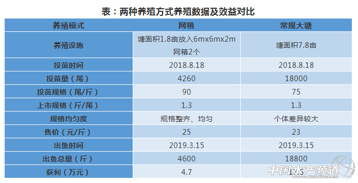 | 中國水產頻道原創報道, 當很多人還對鱖魚飼料養殖持懷疑態度時,有一批先行者已經賺取了第一桶金。 文/圖 佛山市廣添飼料有限公司 技術部 編輯/ 鱖鱸前沿實習編輯 葉豐齊 鱖魚是一種名貴食用魚,又名鱖花魚、桂花魚,廣泛分布于我國除青藏高原外的各大水系。鱖魚是典型的肉食性魚類,在天然水域中以捕食活魚蝦為生。自上世紀90年代以來,我國用配合飼料投喂鱖魚已有不少研究報道,但由于規模化馴食等技術問題未解決,一直以來鱖魚養殖還是采用傳統的池塘活餌養殖方式。 傳統養殖模式成本高、風險大 傳統養殖方式一般較為穩定,但存在以下幾方面問題: 一、活餌養殖成本較高。在鱖魚的養殖過程中要以大約4:1的比例配套鱖魚活餌養殖池以滿足鱖魚在生長發育階段對不同規格活餌料的需求,增加了養殖成本。 二、鱖魚養殖密度小。由于投喂的活餌魚要消耗水體空間和水中溶氧,增加了水體的生化耗氧量。 三、病害傳播幾率高。由于活餌魚可能帶有寄生蟲、致病菌和病毒,用活餌魚投喂有增加鱖魚發病率的潛在風險。 四、追逐攝食導致餌料系數高。尤其是在低溫季節,鱖魚追逐活餌魚到塘邊淺水區導致后者凍死而前者不再攝食,進一步增加了養殖成本。 他第一年用飼料養殖鱖魚,純賺20多萬 基于傳統養殖模式的以上短板,鱖魚養殖亟需轉型升級,才能迎來大突破和大發展。從去年至今,部分傳統鱖魚養殖戶開始嘗試用飼料養殖,并取得了不錯的進展,廣東省江門市新會區棠下鎮天鄉管理區的譚老板就是其中一個。 2018年下半年,譚老板嘗試用池塘安放網箱、以及傳統大塘兩種方式養殖鱖魚,全程投喂廣東佛山市廣添飼料有限公司的鱖魚配合飼料,均取得了不錯的養殖效益。 視頻:譚老板賣魚現場 譚老板用飼料養的肉質肥厚的鱖魚 據譚老板介紹,他養了兩塘鱖魚,其中一塘1.8畝,試著用網箱養殖,另一塘7.8畝,常規大塘養殖。 1.8畝的網箱養殖魚塘放入6m×6m×2m網箱2個,于2018年8月18日每口網箱投魚苗2130尾,這些魚苗為標粗后的尾苗,個體較小,規格約90尾/斤;出魚時兩個網箱的魚規格非常整齊,上市規格為1.3斤/尾,售價為25元/斤,于2019年3月15日全部售罄,共出魚4600斤,獲利約4.7萬元。 7.8畝的常規大魚塘放苗、出魚時間與網箱養殖魚塘的一致,大塘魚苗為標粗頭苗,個體較大,約75尾/斤,共投苗18000尾;出魚時平均規格也達1.3斤/尾,但因個體差異較大,收購價僅23元/斤,出魚18800斤,獲利約15.5萬。 表:兩種養殖方式養殖數據及效益對比 用飼料養殖鱖魚病害少,成本低 譚老板表示,投喂配合飼料的鱖魚在養殖過程中病害不多,特別是寄生蟲病害較少,養殖全程包括苗種、塘租、電費、魚藥漁具、飼料等總成本維持在15元/斤左右,就當時鱖魚塘頭收購價較低的時期而言,養殖效益也非常可觀。 最后譚老板分享了他的鱖魚養殖經驗: 一、苗種不能帶有病毒,應選擇大型苗場生產的優質健康魚苗。 二、放養密度適中。 三、平時應多開增氧機,保證水體溶氧充足(溶解氧>6mg/L)。 四、保持水質清新,亞硝酸鹽<0.05mg/L、氨氮<0.2mg/L;鱖魚喜歡偏弱堿性水質,pH值控制在7.8—8.5之間最佳。 五、在日常養殖過程中應勤巡塘,發現異常及時處理,鱖魚一般不到水面活動,一旦發現有鱖魚在水面活動,則表明此魚極有可能發病,應及早確定病因,對癥治療。 六、對病害的防治應采用“無病防病、有病早治”的方針進行,才能減少鱖魚因病害大量死亡,保證鱖魚養殖成功。在預防措施上,要注意消滅水體中的病原,切斷傳染途徑。 譚老板同時強調,之所以選擇廣添飼料養殖鱖魚,是因為廣添公司鱖魚飼料全部采用優質進口魚粉,包含各種微量元素和維生素,以及免疫增強劑;飼料適口性好、易馴食,投喂鱖魚使其攝入全面均衡的營養,有助于提高免疫抗病能力,促進鱖魚健康生長。鱖魚養殖還應全程采用綜合性預防措施,才能充分達到對病害防治的預期效果。 |