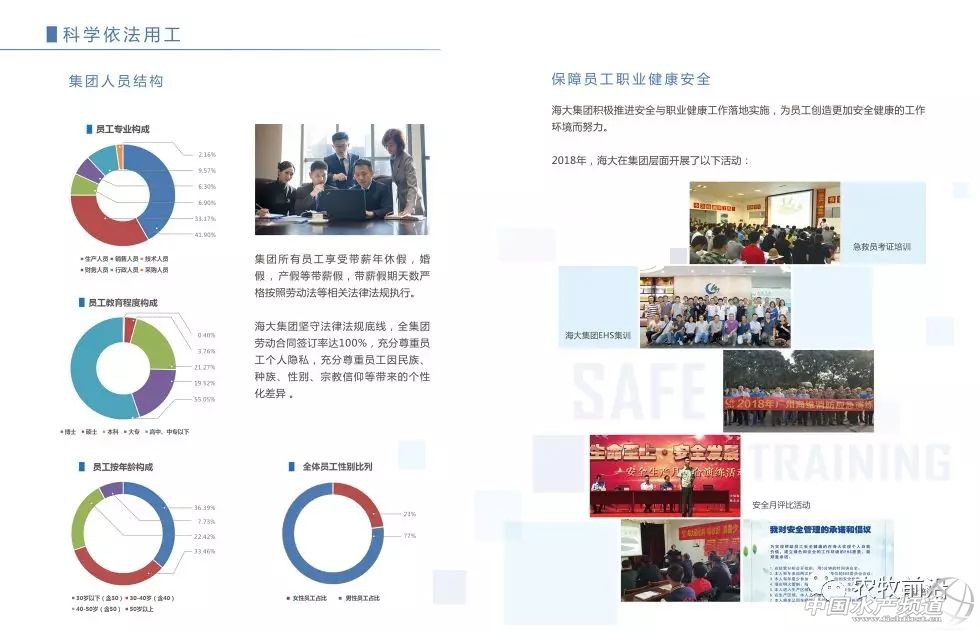 | 中國水產頻道報道, 文/ 農牧前沿 羅丹 圖/ 海大集團 4月23日,廣東海大集團2019年第一季度業績報告出爐:公司營收88.75億元,同比增長22.25%;凈利潤1.22億元,同比增長21.81%。在行業困難階段,海大飼料主業依然能逆勢增長,其內因是什么? 23日,海大集團也同時發布了《2018年度社會責任報告》,報告詳細披露了海大2018年在經營、人才、服務、環境、社會公益等領域的創新和實踐,或許通過對《2018年度社會責任報告》分析,我們能找到海大穩步發展的原因。 圖源自網絡 引領行業發展 報告顯示,2018年海大飼料銷量1070萬噸,營業總收入達421.57億元,歸屬母公司所有者的凈利潤14.37億元,基本每股收益0.9元,加權平均凈資產收益率達20.21%。截止到2018年12月31日,海大員工人數17389人,總資產173.66億元,位列中國上市公司市值500強第278位,2018年中國民營企業500強227位,2018《財富》中國500強233位。 研發碩果累累 海大集團成立20年來,科研投入累計已超過15億元。作為“國家認定企業技術中心”,海大旗下擁有一個研究院,三大研究中心、以及占地1500畝的十余個研發中試基地,匯集了包括59名博士、220名碩士在內的近1200人的研發隊伍,從育種、數據庫、預防治療、高效養殖、生物技術等五大方向進行研發。報告顯示,海大研發方面年均完成實驗項目近1000個,擁有167個發明專利,95個實用新型專利,5個外觀設計專利。特別值得一提的是,海大在羅非魚、南美白對蝦等多品種生長、抗病育種方面取得突破,已產業化新品種8個,其中獲國家級養殖新品種3個。 提升員工價值 秉承著“人才是海大最核心的財富”的人才觀,海大不單發展企業,更重視員工的培訓與生活。面對近2萬海大人,海大集團設計了從新員工、基層主管、到中高層總經理等不同類別的培訓項目,為員工系統系提升專業技能和管理能力。2018年度海大員工正式學習人均學時量為7小時,公司為員工提供正式學習總學時為13萬小時。 為了進一步激勵和留住優秀人才,公司通過工資、績效獎金、專項獎金、限制性股票期權、成長分享等方式建立了完善的薪酬體系。2018年海大人均銷量為657.91噸,人均營業收入242.43萬元,人均職工薪酬12.84萬元,均較去年同期提高7.07%、12.72%、7.17%。 公司還通過組織有益身心健康活動,建立互助基金、風雨同舟獎等多維度來加強對員工生活方面的關愛。報告顯示,于2016年成立的海大員工互助基金在2018年度共支出105.2萬元,救助困難員工48人次。 幫助農民致富 “科技興農,改變中國農村現狀!”這句耳熟能詳的海大口號正在實現。目前,海大有近7000名養殖工程師奔波在欄舍塘頭,為超過60萬養戶提供養殖生產規劃、飼料投喂、環境改良、疫病防治、市場行業與銷售、金融服務等全方面支持。“農業科學化,科學簡單化”,海大踐行這一理念,成為行業服務營銷的標桿,兌現了“一畝塘、一千雞鴨、一欄豬增效千元”的承諾。 服務是海大人的信仰,海大通過養殖模式的設計和優化,加上持續的研發投入、本地化原料的開發與應用,確保海大養殖戶效益高于行業用戶。報告列舉了華中大區傳統花白鰱養殖模式,通過海大技術服務落地,最終可達成畝增效1000元以上,餌料系數降低0.1,飼料利用率提升10%,對環境排放減少15%的多贏結果。 攜手伙伴成長 海大高度重視與供應商、客戶等合作伙伴的溝通與合作。海大通過向養殖戶提供養殖全流程的產品和技術服務支持,確保養殖戶能使用到最先進的養殖技術,確保養殖成功和盈利;通過貸款融資為供應商、客戶解決生產經營難題;通過嚴控產品質量確保客戶和消費者權利;通過集中規模采購,使飼料產品和原料貿易的成本優勢進一步體現,降低客戶成本。 建設美麗鄉村 海大集團秉持“綠水青山就是金山銀山”的理念,實施綠色管理戰略,堅持綠色生產經營,推動綠色發展轉型,不斷完善環境管理體系和責任追求制度,規范企業行為,為實現天更藍、山更綠、水更清和建設美麗鄉村做出積極貢獻。 海大飼料產品通過采用“飼料原料替代技術”、“飼料原料預處理技術”、和“高能低蛋白環保飼料配方技術”,不斷優化產品結果,推廣膨化飼料應用,可提高飼料產品消化率,減少含氮有機物的排放;通過新型飼料添加劑的應用,如耐高溫性酶制劑、植酸酶或有機螯合礦產品的應用,大大降低無機磷等礦物元素的排放。 同時在環保方面,海大以“建立綠色和安全的工作環境,使安全和環保成為公司持續發展的基石之一”為使命,逐步推薦清潔生產,節約成本,積極推薦工廠的污染物管理,探索廢氣治理工廠。2018年海大集團成立了第一屆集團EHS委員會,并于2018年內,發布內部EHS標準12個,策劃EHS專項活動16項,2018年環保固定資產投入達3392.28萬元。 積極參與扶貧 |