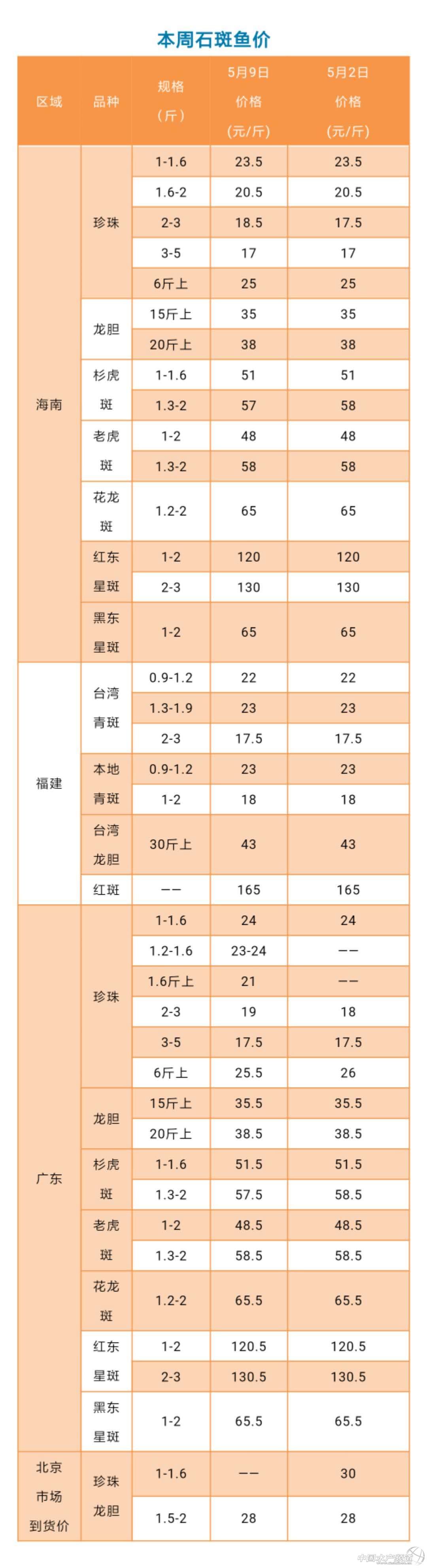 2-3斤珍珠上漲1元/斤,杉虎斑價格下滑