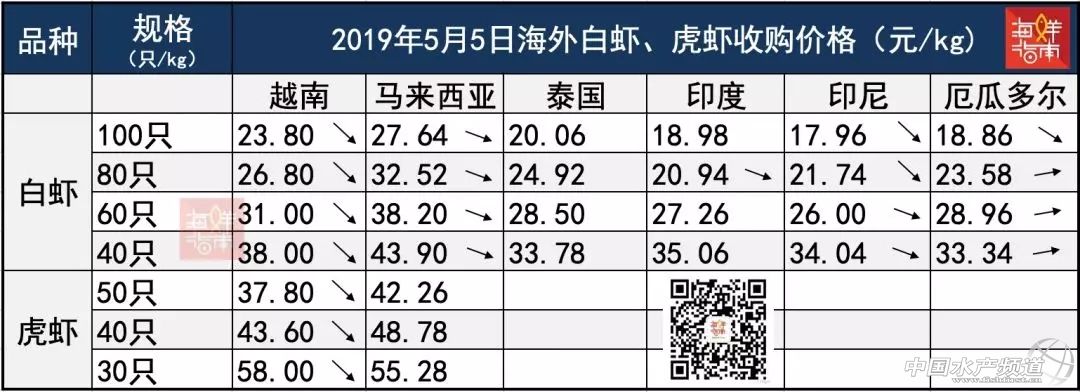 | 中國水產頻道原創報道, 文/圖 海鮮指南(seafood-guide) 張麗麗、陳磊 海外白蝦原料收購價格 5月5日,與前兩周相比,全球海外主產區白蝦收購價仍處于低位且普遍下滑,其中,僅厄瓜多爾逆勢小幅上漲;越南、印尼、馬來西亞均出現不同程度下跌;泰國、印度價格變化不明顯。詳情如下圖: 注:以上產品為當地蝦類的塘頭收購價,匯率按當地貨幣實時兌換人民幣計算 5月5日,全球主產區40規格白蝦收購價格走勢(來源:海鮮指南) 5月5日,全球主產區60規格白蝦收購價格走勢(來源:海鮮指南) 各產區原料蝦具體漲跌情況如下: 厄瓜多爾白蝦收購價逆勢上漲 如下圖所示,5月5日,相較前兩周,厄瓜多爾白蝦收購價格小幅回升,80只/kg漲幅為0.6元/kg,60只/kg漲幅達0.8元/kg,40只/kg漲幅為0.9元/kg。 厄瓜多爾白蝦原料收購價格走勢(來源:海鮮指南) 越南白蝦收購價大幅下跌 5月5日,如下圖所示,相比前兩周,越南白蝦收購價格整體下挫,100只/kg和80只/kg降幅均達到3元/kg,60只/kg降幅達1.6元/kg,40只/kg降幅達1.8元/kg。 筆者分析,越南蝦價下滑明顯,主要受中國市場五一假期影響,節前采購需求相對旺盛,節后價格回落。 越南白蝦原料收購價格走勢(來源:海鮮指南) 泰國白蝦收購價基本平穩 從下圖可以看出,泰國原料蝦價本周基本平穩。5月5日,除80只/kg原料蝦降幅為0.4元/kg,其他規格暫無波動。 泰國白蝦原料收購價格走勢(來源:海鮮指南) 印度白蝦收購價格小幅振動 5月5日,印度白蝦收購價與前兩周相比,小幅振動。100只/kg降幅達0.3元/kg,80只/kg降幅達0.8元/kg,40只/kg降幅達0.2元/kg。60只/kg價格相對堅挺。 印度白蝦原料收購價格走勢(來源:海鮮指南) 印尼100白蝦下跌明顯 5月5日,從下圖可以看出,印尼白蝦收購價全線下滑。其中,100只/kg降幅達到2.1元/kg,80只/kg降幅達到1.2元/kg,60只/kg降幅達0.3元/kg,40只/kg降幅達0.3元/kg。 印尼白蝦原料收購價格走勢(來源:海鮮指南) 馬來西亞蝦價與上周持平 5月5日,如下圖所示,與前兩周相比,各規格白蝦降幅達0.7元/kg。 馬來西亞白蝦原料收購價格走勢(來源:海鮮指南) 越南、馬來西亞虎蝦收購價格行情 從下圖可以看出,5月5日,越南虎蝦價格下跌明顯。50只/kg降幅達到2.6元/kg,40只/kg降幅高達到5.6元/kg,30只/kg降幅達2.6元/kg。 越南虎蝦(草蝦)收購價格走勢(來源:海鮮指南) 5月5日,馬來西亞虎蝦各規格收購價格整體比較穩定,暫無明顯波動。 馬來西亞虎蝦(草蝦)收購價格走勢(來源:海鮮指南) 溫馨提示: 以上價格行情由媒體“海鮮指南”統計整理發布,僅供參考。市場有風險,交易需謹慎。 |