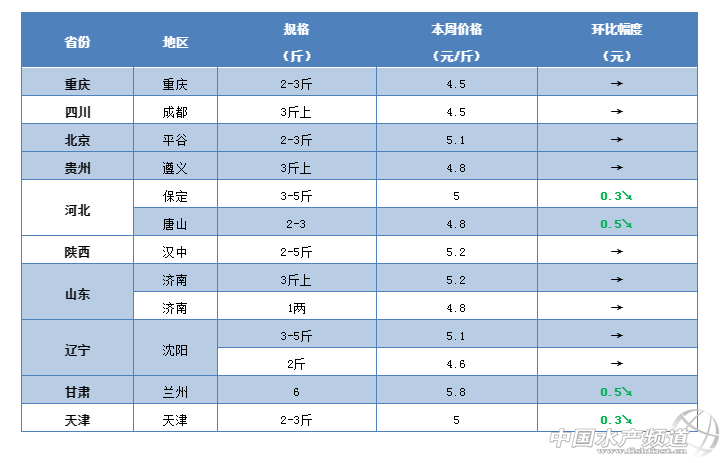 | 中國水產(chǎn)頻道原創(chuàng)報(bào)道, 豬肉不夠賣,魚卻賣不出!端午將至,豬肉賣出112.7元/斤的罕見高價(jià),魚價(jià)什么時(shí)候可以漲? 文/ 水產(chǎn)前沿 鄭鵬飛 一周要聞 1.馬上端午節(jié)了,龍舟水也是如約而至!中央氣象臺6月4日06時(shí)繼續(xù)發(fā)布強(qiáng)對流天氣藍(lán)色預(yù)警,預(yù)計(jì)6月4日夜間至6日,南方地區(qū)將自西向東、自北向南出現(xiàn)強(qiáng)降雨過程;西南地區(qū)東部、江漢、黃淮南部、江淮、江南、廣西北部等地先后有大到暴雨,其中江漢、江淮等地的部分地區(qū)有大暴雨,局地伴有短時(shí)強(qiáng)降水、雷暴大風(fēng)或冰雹等強(qiáng)對流天氣;華北黃淮局地有強(qiáng)對流天氣內(nèi)蒙古東部和南部、吉林東部、遼寧南部、河北北部、甘肅南部、山東西部和東部、四川盆地中東部等地的局地將有雷暴大風(fēng)或冰雹天氣;吉林東北部、河北北部、甘肅南部、陜西西南部、四川盆地中東部、貴州南部、廣西南部和東部、廣東南部沿海地區(qū)等地的部分地區(qū)將有短時(shí)強(qiáng)降水,小時(shí)雨量20-40毫米,局地可達(dá)50毫米以上。 2.今年的端午節(jié)正好趕上高考。吃魚補(bǔ)腦,這幾天各位家長們記得餐桌上要多加幾條魚,也預(yù)祝各位高考的考生考出理想的成績! 3.據(jù)了解,最近香港的上水屠房發(fā)現(xiàn)非洲豬瘟,同批的4700頭生豬被銷毀,肉鋪的豬肉價(jià)格暴漲到128港元(折合人民幣112.7元)一斤。在非洲豬瘟的影響下,未來國內(nèi)豬肉消費(fèi)缺口巨大,香港的這次漲價(jià)有可能成為未來豬肉價(jià)格暴漲的一個(gè)縮影。但是,豬肉不夠吃,草魚卻賣不出。剛剛從養(yǎng)殖戶了解到,最近湖南,江西,浙江,河北等多個(gè)地區(qū)的草魚賣不出,價(jià)格行情再次出現(xiàn)下滑,養(yǎng)殖戶紛紛表示究竟問題出在哪里? 一周行情 華南地區(qū) 據(jù)中央氣象臺消息,6月4日夜間至6日,南方地區(qū)將自西向東、自北向南出現(xiàn)強(qiáng)降雨過程。從朋友圈了解到,目前珠三角地區(qū)正雷雨不斷,廣東中山地區(qū)有部分街道已經(jīng)被完全淹沒,大家要注意出行安全。暴雨天氣也是導(dǎo)致了出魚的難度,本周華南地區(qū)的草魚行情整體繼續(xù)保持平穩(wěn),目前的塘頭價(jià)還是沒有明顯變化。據(jù)了解,目前中山地區(qū)的草魚行情微漲,成魚價(jià)格維持在4.8元/斤左右;江門地區(qū)草魚存塘還是比較多,近期行情相對低迷。不過大家對于節(jié)日的行情還是抱樂觀態(tài)度,大部分養(yǎng)殖戶表示端午節(jié)草魚行情應(yīng)該會漲。 肇慶:本周肇慶地區(qū)的草魚行情還是保持穩(wěn)定不變。有養(yǎng)殖戶表示,魚價(jià)一定會漲,只是目前時(shí)候還未到,端午節(jié)價(jià)格應(yīng)該會上漲,不過幅度應(yīng)該不會很大。 中山:節(jié)日臨近,最近中山地區(qū)的草魚行情整體保持平穩(wěn),部分市場草魚開始好賣了一些。據(jù)流通商介紹,目前中山地區(qū)的草魚行情微漲,希望端午節(jié)行情能漲。 江門:本周江門地區(qū)的草魚行情還是相對低迷,塘頭價(jià)暫時(shí)沒有明顯變化。有養(yǎng)殖戶表示,目前當(dāng)?shù)氐牟蒴~存塘魚還是比較多,預(yù)計(jì)端午節(jié)上漲很難。 梅州:據(jù)業(yè)內(nèi)人士介紹,目前梅州地區(qū)的草魚價(jià)格受到豬肉漲價(jià)的影響還不是很明顯,草魚最新塘頭價(jià)還是維持在5-5.3元/斤。 廣西:目前廣西地區(qū)的草魚還是沒有動靜,塘頭價(jià)基本維持上周水平。目前欽州地區(qū)草魚最新報(bào)價(jià)5.3元/斤,養(yǎng)殖戶表示端午節(jié)應(yīng)該會漲。 華中地區(qū) 最近華中地區(qū)的天氣也是不穩(wěn)定,為了緩解存塘壓力,減小缺氧的風(fēng)險(xiǎn),很多養(yǎng)殖戶選擇在節(jié)日前賣掉一批魚。這也使得最近幾天華中多個(gè)地區(qū)的草魚行情再次出現(xiàn)下滑。據(jù)養(yǎng)殖戶介紹,最近湖南永州地區(qū)草魚不好賣,昨天晚上益陽地區(qū)的3斤的草魚上車價(jià)只有4.2元/斤;江西樟樹地區(qū)的草魚塘頭價(jià)再次下滑,小規(guī)格的塘頭價(jià)賣3.6元/斤,3斤以上的賣4.1-4.2元/斤;南昌地區(qū)魚都賣不出去,部分地區(qū)草魚價(jià)格行情出現(xiàn)下滑。養(yǎng)殖戶表示,養(yǎng)魚的門檻太低誰都會養(yǎng),加上飼料廠業(yè)務(wù)員的指導(dǎo)導(dǎo)致目前產(chǎn)能嚴(yán)重過剩,購買力下降,消費(fèi)習(xí)慣的改變也是的傳統(tǒng)四大家魚的消費(fèi)比例明顯下降,草魚行情想不跌都難。暫時(shí)看不到漲價(jià)的跡象,目前存塘草魚還很多而且很多新草魚馬上快出來了,預(yù)計(jì)今年端午節(jié)草魚很難漲。不過也有湖北養(yǎng)殖戶表示,沒有哪年高考的時(shí)候草魚不漲價(jià)的,預(yù)計(jì)端午會上漲01.-0.2元/斤,年底會回到2017年的價(jià)位。 湖南:本周湖南地區(qū)的草魚不太好賣,價(jià)格行情出現(xiàn)下滑。據(jù)養(yǎng)殖戶介紹,最近湖南永州、常德等地區(qū)草魚不好賣,昨天晚上益陽地區(qū)的3斤的草魚上車價(jià)只有4.2元/斤,目前存塘草魚還很多而且很多新草魚馬上快出來了,預(yù)計(jì)端午節(jié)草魚價(jià)格上漲無望。 湖北:本周湖北地區(qū)的草魚行情整體還是保持穩(wěn)定,暫時(shí)沒有明顯變化。有養(yǎng)殖戶表示,沒有哪年高考的時(shí)候草魚不