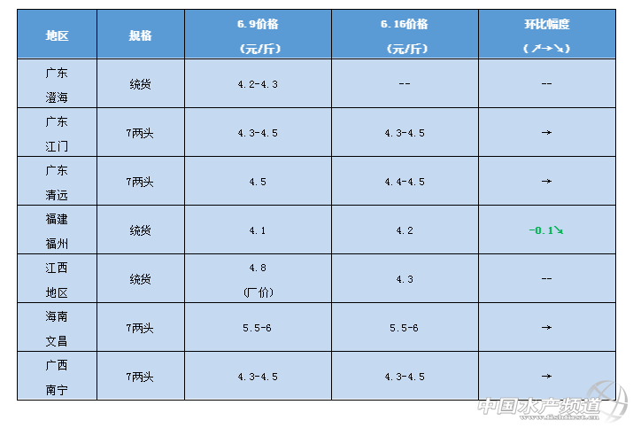 | 中國水產頻道原創報道, 未來一兩個月內蛙價可能出現大幅度上漲。 文/ 水產前沿 陳曉慶 一周行情簡析 牛蛙 本周,廣東、廣西、江西、海南地區牛蛙價格穩定,與上周持平,福建地區小幅下跌,與上周相比下降了0.1元/斤。目前澄海地區已經沒有了大蛙,預計要到農歷的九、十月份才會有新的大蛙出來。業內人士認為,受天氣變化、病害、拆遷等因素的影響,蛙價持續低迷,但處于拆遷地區的牛蛙近期會陸陸續續出完,隨著蛙量的減少,未來一兩個月內蛙價可能出現上漲。 青蛙(黑斑蛙) 今日江西地區青蛙報價24元/斤,目前處于青蛙價格的小高峰,出蛙已經到了尾聲,種蛙也都賣完了,市場沒有了商品,價格也隨之升高。 泰國虎紋蛙 金浦蛙料養殖效果 |