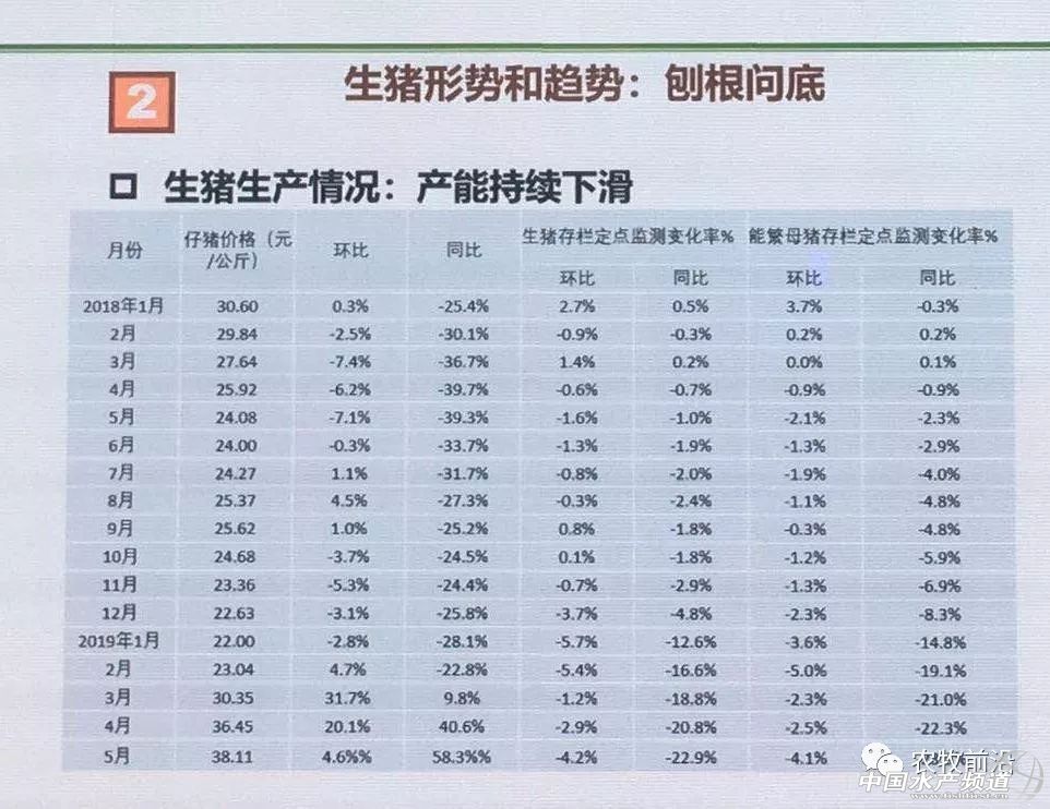 中國水產頻道原創報道, 文/農牧前沿劉程 圖/農牧前沿羅丹 6月17日,第四十七屆養豬產業博覽(廣州)上舉行了養豬產業政策與分析論壇。農業農村部畜牧獸醫局辛國昌、國家生豬產業技術體系產業經濟研究室郭惠武、溫氏集團副總裁羅旭芳在此次論壇上分享了對當下養豬產業形勢和未來發展的看法。 非洲豬瘟防控與當前畜牧業生產形式 農業農村部畜牧獸醫局辛國昌 一、防疫病與穩生產:兩難選擇 非洲豬瘟防控情況:截至6月13日,全國累計有31個省份以及新疆生產建設兵團先后發生137起非洲豬瘟疫情,其中家豬疫情134起、野豬疫情3起。今年以來,全國新發疫情38起,其中前三個月月度疫情數連續保持在個位數,疫情發生勢頭總體減緩。目前,26個省份的疫區已經全部解除封鎖,有7起疫情尚未解除疫區封鎖。 總結與反思:我們第一次面對非洲豬瘟,沒有防控經驗,但防控措施總體有效。防控策略一直在與時俱進不斷調整,有一個根據實際情況逐步完善的過程。 非洲豬瘟發展的新判斷:要做好打持久戰的準備。疫病本身非常頑固,加上全國各地有各種不同的養殖模式,生產方式復雜。整體防控能力薄弱,基層獸醫隊伍不夠強。還有跨境疫情的不確定性等因素影響。 下一步防控工作安排:一是壓實各方防控責任,二是落實現行防控方案,三是強化屠宰環節監管,四是加快實施分區防控。 二、生豬形勢和趨勢:刨根問底 生產形勢:產能持續下滑。 生產監測數據仍具有權威性和可靠性,不要以個別區域的數據來否定全國數據。 生豬生產后勢判斷:能繁母豬是生豬生產的源頭,1—5月豬飼料下降15.2%,其中母豬料下降23.6%,能繁母豬存欄量影響6—10個月之后的肥豬上市,下半年供應趨緊,四季度到明年供應可能會出現緊張。 關于全年產量的判斷:2019全年豬肉產量大概下降10%-15%(5404萬噸*10%或15%,約減少540-810萬噸)。 關于肉類供應:四季度供應出現緊張,但沒有那么嚴重,因為消費在下降,1—5月消費下降13%。即使有540萬噸豬肉缺口,禽肉仍有補缺能力,禽肉增產潛力約為300-320萬噸。此外我國還有200萬噸的進口空間,2018年進口119萬噸。肉品供應總體不會出太大問題。 禽肉能否替代豬肉:禽肉是最有可能替代豬肉的肉類。首先禽肉具有消費優勢,禽肉屬于白肉,符合當下追求健康的消費心理;其次具有生產優勢,禽類飼養周期短,料肉比低;再者禽肉的價格優勢比豬肉大。從全球消費趨勢看,1961-2017年,豬肉和禽肉年均增長率分別為2.9%和4.8%。2016年禽肉取代豬肉成為全球消費最多的肉類。 生豬價格走勢判斷:3月份第1周,全國活豬平均價格每公斤12.91元,同比上漲2.1%,近兩年來首次超過上年同期水平。4月份第1周,活豬價格每公斤15.15元,短短一個月價格上漲了17.4%,同比漲幅上升至36%。6月份第1周全國活豬和豬肉平均價格分別為每公斤15.39元和25.13元,同比分別上漲38%和27.8%。價格關鍵看四季度,價格上漲是大趨勢。2016年活豬價格最高為20.8元/公斤,我們預估今年四季度活豬價格將超過16年的歷史最高水平。 三、家禽和牛羊生產:收之桑榆 肉雞生產增速較快:根據監測數據推算,1-5月全國肉雞出欄同比增加17.5%,雞肉產量同比增加16.1%。肉雞養殖場戶對后勢期望值較高,商品代肉雞苗累計銷量同比增長13.9%,平均價格同比上漲59%,部分地區白羽肉雞雛雞價格突破每只10元。如果后期消費需求沒有明顯增加的話,價格回落的可能性比較大。當前雛雞價格高企將大幅提高生產成本,建議廣大養殖場戶要理性安排生產。今年白羽肉雞過熱導致前5月出現虧損,每出欄一只約虧損0.66元;黃羽肉雞效益還不錯,每出一只約盈利1.78元。 牛羊肉市場供需總體偏緊:肉牛生產略有增長,肉羊存欄小幅下降,總體保持平穩。據監測,5月份肉牛存欄同比增長4.9%,能繁母牛同比增長0.6%;肉羊存欄同比下降1.6%,能繁母羊同比下降2.3%。從消費需求看,由于今年豬肉存在一定缺口,可能會對牛羊肉消費起到一定的刺激作用,促進牛羊肉消費需求增加,市場供需仍將延續偏緊局面,牛羊肉價格維持高位運行。 四、畜牧業產業格局:山雨欲來 幾個不以人們意志為轉移的大趨勢: 產業鏈重塑——專業分工、產區屠宰、冷鏈運輸是大趨勢 產品結構調整——豬肉比重下降、禽肉比重提高是大趨勢 經營規模變化——適度規模家庭經營崛起是大趨勢 區域結構調整——根據土地消納能力,實行種養結合、農牧循環是大趨勢。 畜產品質量安全——嚴管是大趨勢。6月13日,韓正副總理主持召開座談會,聽取對食品安全工作的意見建議,再次強調“四個最嚴”要求。 我國生豬產業布局及地區供求余缺分析 國家生豬產業技術體系產業經濟研究室郭惠武 北部區、西北區、東部區合計盈余368.8萬噸,中南區和西南區合計短缺452.5萬噸,83.3萬噸的總缺口需要通過進口補足。 中南區供給缺口如何補足: 1、從其他省份外調:主要對象是湖北和河南,盈余分別為94.5和275.5萬噸,東部區總盈余198.7萬噸。 2、進口豬肉:目前我國進口豬肉120萬噸左右,國際市場供應潛力為600-800萬噸。 3、促進生產發展:解決中南地區產業發展矛盾。 促進現代化的豬場建設:廣東正在建設5個省級的生豬產業園(湛江壹號食品(湛江)土豬產業園、汕頭市潮南區生豬產業園、河源市(東瑞)生豬產業園、湛江市吳川市生豬產業園、新興縣生豬產業園)。 發展高品質豬肉的生產:適應消費升級。 充分利用良好