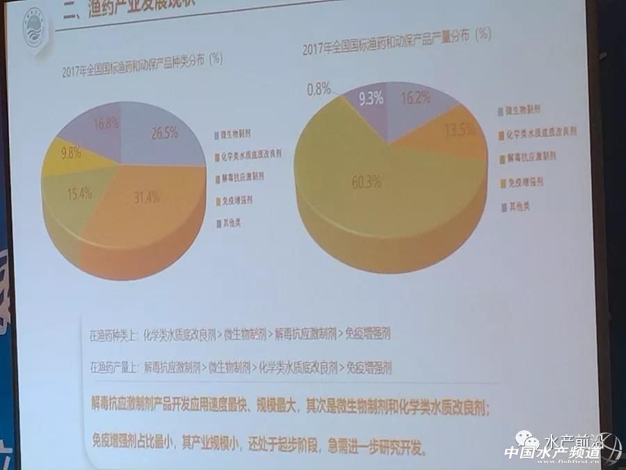 文/圖 水產(chǎn)前沿 鄭鵬飛 中國水產(chǎn)頻道原創(chuàng)報道,6月22日,由中國漁業(yè)協(xié)會動保分會主辦的2019年“綠色動保,健康養(yǎng)殖,安全用藥”研討會在合肥濱湖會展中心205會議室召開。會議邀請了中國漁業(yè)協(xié)會常務(wù)副秘書長彭斌輝、全國水產(chǎn)技術(shù)推廣總站站長助理王玉堂、中國海洋大學(xué)教授潘魯青、華中農(nóng)業(yè)大學(xué)顧澤茂、安徽農(nóng)業(yè)大學(xué)彭開松、大北農(nóng)神爽水產(chǎn)科技集團樊博江、北京漁經(jīng)生物技術(shù)有限公司總經(jīng)理蔣火金、北京百泰富水產(chǎn)科技有限公司總經(jīng)理張衛(wèi)明、成都科宏達科技有限公司動保事業(yè)部張繼甫做精彩報告分享。會議由中國漁業(yè)協(xié)會動保分會副秘書長鄭超富主持,中國漁業(yè)協(xié)會動保分會會長徐劍鋒為論壇做了總結(jié)發(fā)言。 精彩報告 我國漁藥產(chǎn)業(yè)與漁藥使用問題介紹 全國水產(chǎn)技術(shù)推廣總站 王玉堂 全國水產(chǎn)技術(shù)推廣總站王玉堂針對2017年漁業(yè)概況;漁藥的基本概念;國家標準漁藥;水產(chǎn)養(yǎng)殖業(yè)禁用藥物;漁藥的生產(chǎn)與營銷;微生態(tài)制劑使用中的問題;漁藥使用技術(shù)指導(dǎo)原則等問題做了詳細介紹。 2017年,全國水產(chǎn)品總產(chǎn)量6445.33萬噸,比上年增長1.03%。其中養(yǎng)殖產(chǎn)量4905.99萬噸,約占總產(chǎn)量的76.12%,同比增長2.35%;捕撈產(chǎn)量1539.34萬噸,約占總產(chǎn)量的23.88%,同比降低2.96%。全國人均水產(chǎn)品占有量46.37千克,比上年減少0.23千克。在總產(chǎn)量中,海水產(chǎn)品產(chǎn)量3321.74萬噸,占總產(chǎn)量在51.54%,同比增長0.62%;淡水產(chǎn)品產(chǎn)量3123.59萬噸,占總產(chǎn)量的48.46%,同比增長1.47%。海水養(yǎng)殖產(chǎn)量2000.70萬噸,比上年增加85.38萬噸,增長4.46%。海水養(yǎng)殖魚類中,大黃魚產(chǎn)量最高,為17.76萬噸;鱸魚產(chǎn)量第二,為15.66萬噸;石斑魚產(chǎn)量第三,為13.15萬噸。淡水養(yǎng)殖產(chǎn)量2905.29萬噸,比上年增加27.40萬噸,增長0.95%。其中:魚類2540.98萬噸,比上年增加0.88萬噸,增長0.03%;甲殼類291.85萬噸,比上年增加28.19萬噸,增長10.69%;在淡水養(yǎng)殖魚類中,草魚產(chǎn)量最高,534.56萬噸;鰱魚第二,385.28萬噸;鳙魚位列第三,為309.80萬噸。漁藥,是指用于診斷、預(yù)防、治療水生動植物及觀賞魚類疾病,以及調(diào)節(jié)水生動物生理機能的一類獸藥。 目前,我國漁藥的種類包括以下幾大類:(1)抗微生物制品(抗菌抑菌藥)(2)殺蟲驅(qū)蟲藥物(3)消毒藥(4)調(diào)節(jié)水生動物代謝及生長藥物(5)環(huán)境改良劑(6)生物制品(主要是疫苗)(7)中草藥(8)其它。 到2012年底,允許使用的國家標準漁藥集中反映在農(nóng)業(yè)部1435號、1506號、1759號、1525號、1960號公告及2010版《中國人民共和國獸藥典》中,共有104種、147個劑型和規(guī)格。其中:抗生素類6種,合成抗菌藥17種(磺胺類5種、喹諾酮類12種);殺蟲驅(qū)蟲藥15種(抗原蟲藥5種、驅(qū)殺蠕蟲藥6種、殺寄生甲殼動物藥4種),消毒劑16種(醛類2種,鹵素類12種、季胺鹽類1種,其它1種),中草藥類71種(藥材和飲片24種、成方制劑與單味制劑47種),調(diào)節(jié)水生動物代謝或生長的藥物9種(維生素2種、激素6種、促生長劑1種),環(huán)境改良劑7種,水產(chǎn)用疫苗種7種(國產(chǎn)5種、進口2種)。 農(nóng)業(yè)公告,2015年9月1日起禁止養(yǎng)殖使用:氧氟沙星、增氟沙星、美洛沙星、諾氟沙星;12月31日起禁止生產(chǎn),2016年12月31日起禁止經(jīng)營的銷售。2015年10月1日起禁止使用微生態(tài)制劑:噬菌蛭弧菌。此菌并非漁藥,原批復(fù)可以使用的是農(nóng)牧函[1994]37號。在水產(chǎn)品藥物殘留超標事件上,因為目前的檢測項目和目標藥物的明確性問題,主要集中在“禁用藥物”的檢測方面,其中發(fā)生質(zhì)量安全事件頻率較高的化學(xué)物質(zhì)有孔雀石綠、硝基呋喃類(呋喃西林、呋喃它酮、呋喃妥因、呋喃唑酮)、氯霉素、喹乙醇、有機磷類農(nóng)藥等,此外,還有少量的限用漁藥的殘留限量超標。 漁藥使用技術(shù)指導(dǎo)原則是1、根據(jù)患病動物狀態(tài)選擇藥物和給藥途徑:發(fā)病初期尚能攝食時可用藥餌,中后期用藥餌無用2、根據(jù)病原體的特征選擇用藥:病毒、細菌、真菌、寄生蟲等3、根據(jù)漁藥劑型選擇用藥:粉劑、針劑、片劑等。選擇藥物的依據(jù)有:1、依據(jù)致病菌對抗生素類藥物的抗菌譜選擇,能用窄譜不要用廣譜藥,最好是作藥敏試驗后確定藥物種類與劑量2、注意致病對藥物的感受性,看是否已產(chǎn)生耐藥性3、注意藥物的作用方式:了解抗生素的作用機理,對致病菌是起抑制還是殺滅作用4、注意第一次選用藥物與第二次選用藥物的關(guān)系,多次和長時間用一種抗菌藥,病原可能會產(chǎn)生耐藥性,用足療程和劑量。 開放邊界共生成長,互聯(lián)互通共創(chuàng)共贏 大北農(nóng)神爽水產(chǎn)科技集團 樊博江 大北農(nóng)神爽水產(chǎn)科技集團樊博江做了題為“開放邊界共生成長互聯(lián)互通共創(chuàng)共贏”的報告。他介紹了大北農(nóng)神爽的含義:神就是提精補神,意在賦能;爽就是爽悅他人,意在利他。不要用現(xiàn)在的思維限制對未來的思考。中國改革開放40年,人均GDP9000美元,過去10年GDP增長3.5倍,2018年已經(jīng)