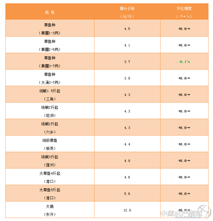 【關鍵字】:草魚  塘頭價  市場行情  水產養殖