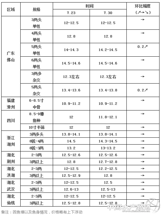 | 中國水產頻道報道, 最新報價、熱點行業資訊 黃顙魚行情周報正式發布 每周相約水產前沿 文/ 水產前沿 林貞武 7月30日各大產區塘頭報價 本周黃顙魚行情穩定,目前價格似乎已經達到了某一個高峰點,預計將會有一段時間的維持期,價格穩定,但是近期魚體健康挑戰更加大,本周重點關注。 廣東產區5兩雜交黃顙魚這兩天有個別養殖戶賣到14元/斤的價格,可能是魚身靚或者關系好的原因,目前賣價普遍為13.4-13.8元/斤之間,單性黃顙魚絕大多數規格的價格比雜交貴0.3-0.5元/斤,受持續性高溫影響,特別是白撞魚天氣,在抓魚方面變得更加謹慎了,預計價格會暫時保持穩定。 四川區域在上次升價之后,這段時間對穩定了,主要供給本地市場,需求量沒有大的波動,價格也就相對穩定。浙江湖州暫時最高價格還是維持在13元以內,走貨量相對穩定。湖北地區本周行情波動不大,個別區域在0.1元/斤的波動,這跟魚中流通商有一定的關系。 據一線漁醫反饋近期黃骨魚市場出現嚴重損耗,在此作強調提醒 一、主要癥狀如下 1.突眼,紅下巴 2.內臟各個器官出血嚴重 3.鰓絲貧血,發白 4.肝臟貧血,發白或土黃色 5.腹腔內膜嚴重出血 6.有的肌肉也是出血嚴重 二、誘因:機體損傷(寄生蟲咬傷,拉網機械損傷,氣泡病等) 病原:嗜水氣單胞菌,(很多人會誤認為為鏈球菌) 病名:氣單胞菌敗血癥 特點:條件致病菌,容易反復,需要多次處理,做好以下管理就是最好的預防 三、高溫季節,管理要到位,以防為主 1.科學檢測(水質檢測和病害檢測) 2.正確處理(水質調節配合內服調理) 3.預防前置(水質防控結合內服保健) 4.加強改底(定期改善塘底,分解型改底) 5.加大曝氣(曝氣預防氣泡病) 6.控制投料(外部環境變化控制投喂) 7.勤力巡塘(下風口注意水質氣味慢游魚) |