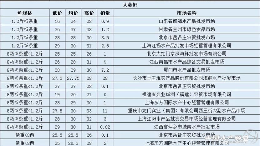 摘要: 中國水產頻道報道,8月12日最新多寶魚各地批發市場價