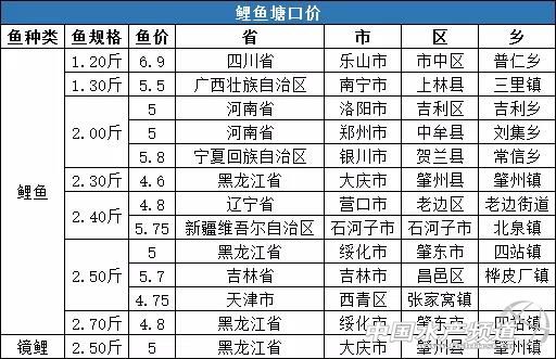 來源:通威農牧資訊,作者/張梅 數據分析 中國水產頻道報道,本周全國鯉魚塘口均價5.28元/斤,同比上漲4.97%,環比上漲0.96%。 華北地區:黑龍江綏化、大慶地區近期受陰雨天氣影響,出魚、市場流通受阻,價格較上周上漲0.1-0.2元/斤。遼寧、河南、吉林等地鯉魚陸續上市,價格與上周基本持平,預計后期價格會呈下跌趨勢。 華西地區:四川、寧夏地區市場流通穩定,價格與上周持平。 走勢預測 全國新魚陸續上市,市場供大于求,預計近期鯉魚價格穩中有跌。(本文轉自【通威農牧資訊】。如有版權問題,敬請聯系wx@fishfirst.cn。) |