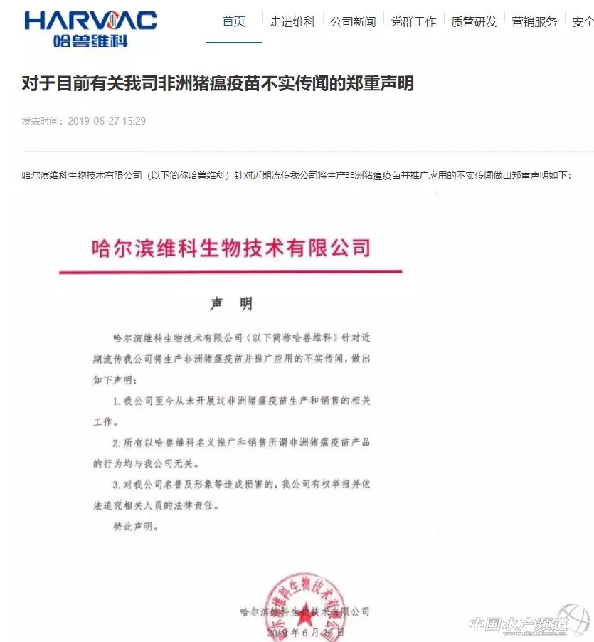 文/ 農(nóng)牧前沿 近日,一張帶有哈獸研標(biāo)志的非洲豬瘟疫苗圖片在網(wǎng)上流傳。據(jù)了解,哈獸研所研發(fā)疫苗都由哈爾濱維科生物技術(shù)有限公司(簡(jiǎn)稱哈獸維科)負(fù)責(zé)生產(chǎn)銷售。9月2日上午,農(nóng)牧前沿致電哈獸維科公司,已證實(shí)該照片為假冒產(chǎn)品。哈獸維科公司員工在電話中表示,其公司從未生產(chǎn)過(guò)任何與非洲豬瘟相關(guān)疫苗,網(wǎng)上流傳消息為假。 關(guān)于非洲豬瘟疫苗,哈獸維科早在六月份就發(fā)出過(guò)聲明。 哈爾濱維科生物技術(shù)有限公司(以下簡(jiǎn)稱哈獸維科)針對(duì)近期流傳我公司將生產(chǎn)非洲豬瘟疫苗并推廣應(yīng)用的不實(shí)傳聞,做出如下聲明: 1、我公司至今從未開(kāi)展過(guò)非洲豬瘟疫苗生產(chǎn)和銷售的相關(guān)工作。 2、所有以哈獸維科名義推廣和銷售所謂非洲豬瘟疫苗產(chǎn)品的行為均與我公司無(wú)關(guān)。 3、對(duì)我公司名譽(yù)及形象等造成損害的,我公司有權(quán)舉報(bào)并依法追究相關(guān)人員的法律責(zé)任。 |