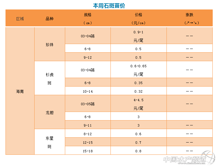 特別感謝:海南晨海水產有限公司、海南大順發水產有限公司、萊州明波水產有限公司、廣東上上生物科技有限公司、廣東大順發水產有限公司、福建藝祺水產養殖有限公司、涌益水產專業合作社為本文提供價格!