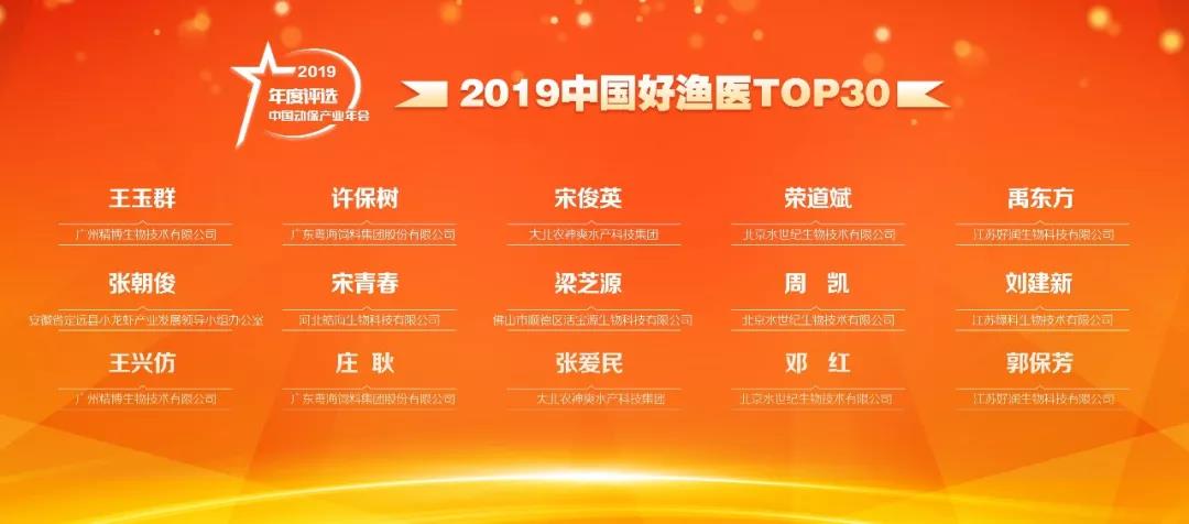 文/圖 水產前沿 中國水產頻道原創報道,近年來,動保產業充滿了機遇和挑戰,跨界融合、品種升級、渠道革新、服務升級、環保壓力、監管加強、新產品研發、互聯網結合等各種風口讓動保企業迸發出新的創造力,行業內百花齊放、百家爭鳴,新鮮事物層出不窮。為呈現行業中的先進力量與成果,《水產前沿》、中國水產頻道推出了“2019中國水產動保產業年度榜”系列評選活動。 9月19日晚,行業眾人重點關注的“2019中國水產動保產業年度榜”評選活動于“第二屆中國水產動保產業年會”頒獎盛典中正式揭開謎底。本次評選活動由《水產前沿》、中國水產頻道聯合國內權威水產動保專家共同推出,歷經行業推選、網絡投票、專業評審等環節綜合評選得出。 本次晚宴由江蘇好潤生物科技有限公司冠名 2019中國水產動保產業年度人物 北京漁經生物技術有限責任公司蔣火金 江蘇好潤生物科技有限公司劉愛民 大北農神爽水產科技集團易敢峰 湖南漁美康生物技術集團有限公司劉紹春 武漢華揚動物保健集團張金林 劉愛民作為領獎嘉賓代表發言 2019中國水產動保產業年度企業 清遠海貝生物技術有限公司 廣州精博生物技術有限公司 武漢中博水產生物技術有限公司 通威股份有限公司 廣東綠百多生物開發有限公司 山東寶來利來生物工程股份有限公司 廣東粵海生物科技有限公司 天津市漁生堂生物技術有限公司 武漢農大生物科技有限公司 佛山市順德區活寶源生物科技有限公司 寶來利來水產研究所副所長鄒紹林作為領獎嘉賓代表發言 2019中國水產動保產業最具成長性企業 廣東正大生物科技有限公司 南昌市億隆達生物科技開發有限公司 河南安進生物技術股份有限公司 廣州承興生物科技有限公司 北京桑普生化集團 江門市澳保生物科技有限公司 長沙拜特生物科技研究所有限公司 湖南坤源生物科技有限公司 成都科宏達科技有限公司 江西派尼生物藥業有限公司 上海康農發水質生態工程有限公司 廣州駿杰生物技術有限公司 廣州億盛生物技術有限公司 宜春強微生物科技有限公司 廣東漁夫寶水產科技有限公司 武漢天辰生物科技有限公司 河北皓海生物科技有限公司 江西九正藥業有限公司 常州億美達生物科技有限公司 江西中成人藥業有限公司 天津市創嘉生物技術有限公司 湖南科義生物科技有限公司 運城金林生物科技有限公司 湖南真科生物技術有限公司 山西康潔藥業有限公司 成都科宏達科技有限公司總經理張繼甫作為領獎嘉賓代表發言 江西中成人藥業有限公司技術總監何春蘭作為領獎嘉賓代表發言 2019中國水產動保產業年度爆品 眾合發(北京)生物科技發展有限公司天の素1號 拜耳(四川)動物保健有限公司速補100 廣東正大生物科技有限公司正大鈣鎂晶 清遠海貝生物技術有限公司海聯科蝦多寶 成都通威三新藥業有限公司餌料多 武漢九州神農藥業有限責任公司蝦蟹毒菌唑 佛山市百瑞生物科技有限公司發酵碳源 北京水世紀生物技術有限公司卵囊藻 安琪酵母股份有限公司益水元牌酵母源水產生物培養劑 上海綠奧生物科技有限公司AB型水體微生態殺菌劑 南昌市億隆達生物科技開發有限公司拌料王 宜興市蘇亞達生物技術有限公司速硝凈 廈門市科環海洋生物科技有限公司鈣黃金 廣東廣盈生物技術有限公司銀連素 河南德鄰生物制品有限公司水產用霉解凈(黃曲霉毒素B1分解酶) 武漢市科洋生物工程有限公司蟲菌發酵料 上海泓寶綠色水產股份有限公司救急菌 南京鴻創生物科技有限公司高效分解底改 天津海友佳音生物科技股份有限公司AQUA-Cal+TM氨必凈 湛江市粵凱生物科技有限公司菠蘿酵素 河南鑫中漁生物技術有限公司小體格大能量系列菌種 宜春市寧旺生物科技有限公司上料王 江門市諾能動物保健科技有限公司活力離子鈣 西安漢堡生物技術發展有限公司蝦肽寶 海南正強超越生化技術開發有限公司獵弧 眾合發(北京)生物科技發展有限公司李海兵技術總監作為領獎嘉賓代表發言 2019中國好漁醫TOP30 廣州精博生物技術有限公司王玉群 廣東粵海飼料集團股份有限公司許保樹 大北農神爽水產科技集團宋俊英 北京水世紀生物技術有限公司榮道斌 江蘇好潤生物科技有限公司禹東方 安徽省定遠縣小龍蝦產業發展領導小組辦公室張朝俊 河北皓海生物科技有限公司宋青春 佛山市順德區活寶源生物科技有限公司梁芝源 北京水世紀生物技術有限公司周凱 江蘇綠科生物技術有限公司劉建新 廣州精博生物技術有限公司王興仿 廣州駿杰生物技術有限公司莊耿 大豐區王港閘豐漁水產養殖服務部張愛民 湖南粵海飼料有限公司鄧紅 濟南中海賽恩生物科技有限公司郭保芳 江蘇好潤生物科技有限公司毛吉 武漢天辰生物科技有限公司陳亮 鹽城市永盛特種水產養殖有限公司陸永生 江蘇漁樂圈生物工程有限公司李志國 中山粵海飼料有限公司鐘健源 南昌市億隆達生物科技開發有限公司李景 天邦食品股份有限公司寧波分公司李逸群 天津市漁生堂生物技術有限公司苗鑫鑫 武漢農大生物科技有限公司千永剛 武漢啟新盛生物科技有限公司趙宇江 江蘇好潤生物科技有限公司白長望 宜興市蘇亞達生物技術有限公司蔣利平 大北農神爽科技集團喻海燕 廣州精博生物技術有限公司梁雙來 天津市寶坻區林亭口水產技術服務部白梅 江蘇好潤生物科技有限公