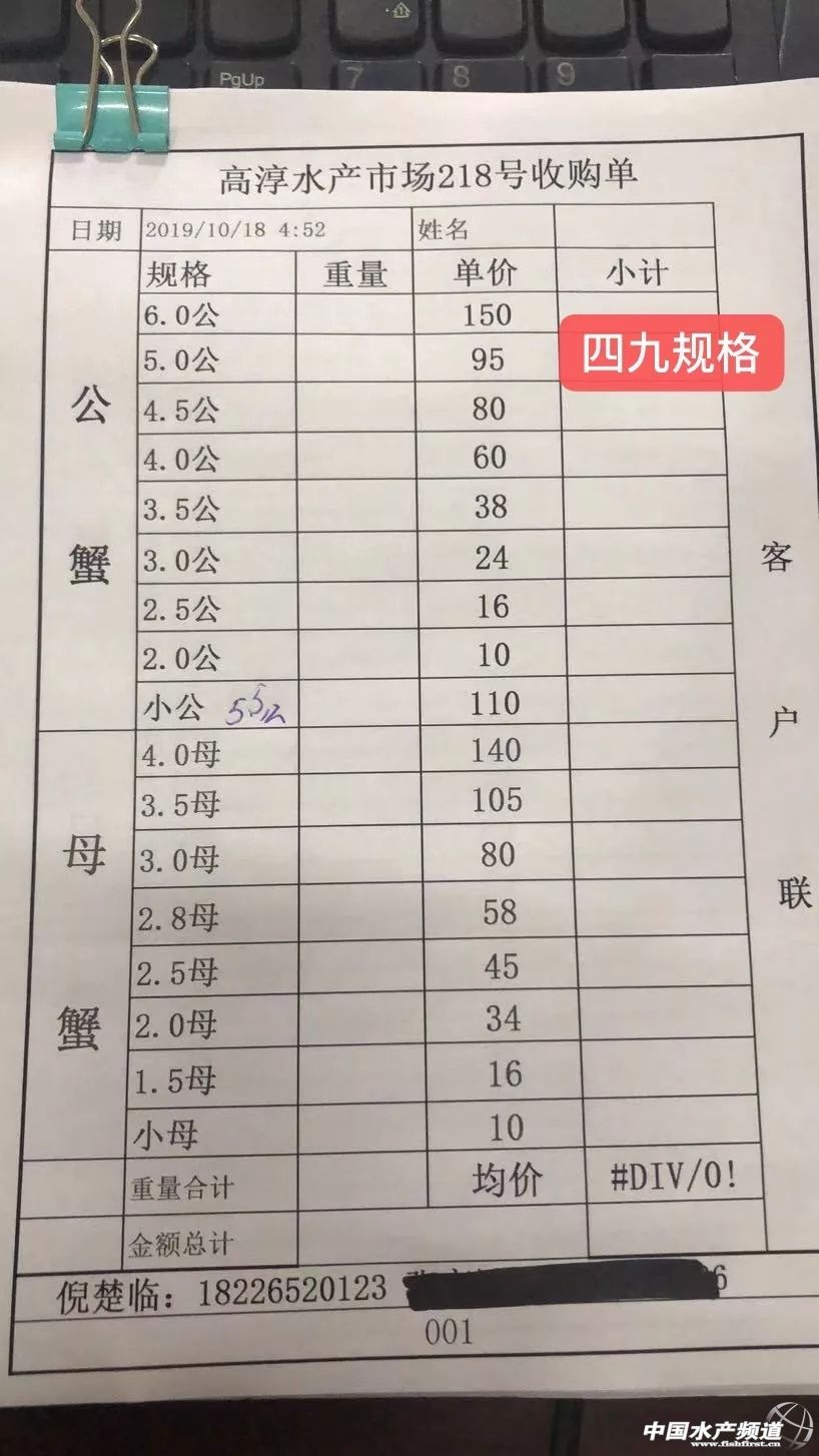 | 中國水產頻道原創報道, 興化公蟹下跌,高淳整體微跌。 蝦蟹行情每日播報 您身邊的行情顧問 歡迎關注蝦蟹前沿公眾號! 最新行情解析 興化 自10月13日上漲后,近期興化蟹價持續走低,目前平均蟹價為31.5元/斤。今天較昨天繼續下跌,但跌幅很小。與去年相比,目前蟹價整體偏低。 目前興化公蟹跌價較多,5公、2.5公、2公、中公均跌1元/斤。母蟹價格未變。 高淳 近期高淳蟹價略有起伏,今天整體略微下跌,平均蟹價60.1元/斤。與去年同期相比,目前高淳蟹價明顯偏低。 今天高淳精品門市4公漲2元/斤,3.5公漲1元/斤,4母跌10元/斤,其他規格價格未變。 今日參考價 興化 此報價由興化丁老板提供 此報價由鹽城天邦申亞陽提供 高淳 此報價由江蘇好潤固城湖店劉坤提供 此報價由鹽城天邦申亞陽提供 泗洪 此報價由泗洪孫老板提供 無錫 此報價由無錫王老板提供 宣城 此報價由宣城劉老板提供 馬鞍山 |