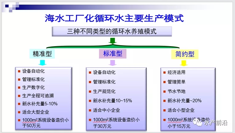 | 中國水產頻道獨家報道, 第三屆循環水養殖技術培訓班正式開班 文/圖 水產前沿 植銀素 “近年來由于環保壓力,水產養殖尾水排放要求十分嚴格,這一次我從四川專門過來參加培訓班,希望可以找到高效的解決方案。”一養殖戶說道。 與會人員合影 10月21日,由中國農業工程學會特種水產工程分會、工業化水產養殖與裝備產業技術創新戰略聯盟主辦的“第三屆循環水養殖技術培訓班”在山東東營舉辦,會議得到了大連海洋大學、設施漁業教育部重點實驗實驗室、上海海洋大學設施漁業研究室、中國科學院海洋研究所、浙江大學生工食品學院、海洋學院、中國水產學會魚類工業化養殖研究會、中國漁業協會智慧漁業分會、中國智慧漁業學院、遼寧省水產設施養殖與裝備技術工程研究中心、正大集團&大連海洋大學、水產養殖設施與裝備研究發展中心等單位的協辦支持,吸引了近150名從業者加入。 大連海洋大學 劉鷹 教授主持開幕式 劉鷹教授表示隨著工業化水產養殖發展,從業者對于技術的需求越來越明顯,所以我們每兩年就聚集各方力量舉辦循環水養殖技術培訓班。很高興能看到來學習的學員越來越多,希望大家都可以在5天課程內有所收獲。 中國農業工程學會特種水產工程分會 秦京光 副秘書長致辭 大連海洋大學 劉鷹教授:路基工廠化循環水養殖現狀與趨勢 1、中國水產養殖業是“永恒”的產業 截止到2015年,我國水產品總量6699.65萬噸,養殖產量4937.90萬噸。劉鷹教授在報告中說道:“中國水產養殖業是永恒的產業”,到2030年,我國水產品數量發展目標是總產量達到7500萬噸,其中養殖產量達5700萬噸,所以水產養殖的發展空間仍然很大。 2、工廠化養殖的新進展 國內陸基工廠化循環水養殖裝備產業現狀特點: 以養殖工程設施設備單元的開發為重點; 以借鑒、模仿、集成國內外水處理設備為特征; 發明創新了10余項新設施裝備,在生產中應用日益廣泛; 工廠化養殖設施設備規模化生產企業50余家; 關鍵設施設備已成批量生產,全部實現了國產化。 近年來我國出現部分創新的養殖新設施設備填補了國內外空白,比如魚病檔案管理系統、自動化控制精準計量投餌機、自動數魚機等,我國循環水設施設備全部實現國產化,而且價格是國外同類產品的1/3-1/10,但整體來說設備智能化、穩定性仍有提升空間。 目前國內常見的三種不同類型的循環水養殖模式如上圖所示。現場有學員詢問不同價格的系統差別在哪里?劉鷹教授表示價格大部分決定著系統的生產的可控性,自動化水平,風險控制水平,其中新水補充量也有明顯的差距。 國外工廠化循環水養殖裝備技術發展趨勢: 自動化程度不斷提高,車間無人值守; 高新化、規模化、普及化、產業化、國際化; 養殖新品種的開發依賴循環水養殖技術; 環境政策、食品安全及綠色消費要求進一步促進循環水養殖產業及裝備技術的發展。 總結:精準陸基養殖是未來我國傳統水產養殖模式的重要發展方向。專業化、自動化的漁業裝備是傳統漁業向現代化發展的重要保障,通過開展水產養殖裝備研究與應用,構建水產養殖裝備技術體系,發揮工程裝備的支撐協同作用,我國現代水產水產養殖業將逐漸呈現出設施大型化、裝備現代化、生產高效化、效益最大化的產業發展態勢! 中國科學院海洋研究所 李軍研究員:工業化水產養殖事宜品種的選擇 循環水養殖具有高密度,高水流速度的特點,因此所選魚種應具有集群習性、可適應高密度養殖,耐水流能力,無攻擊性或自殘習性,適宜配合飼料養殖。另外還要遵循三原則:首先要在工廠化養殖條件下能夠成活,其次是養殖周期事宜(時間較短品種較佳),最后是要“盈利”(高值或者名貴水產品種)。 目前我國工廠化循環水養殖的海水魚類主要有五大類,包括鲆鰈類、石斑魚類、石鯛魚類、河豚魚類、鮭鱒類等。 中國科學院海洋研究所 李賢副研究員:工業化養殖的水質調控與養殖尾水處理技術 海水循環水育苗、養殖生產中,一方面要保證養殖對象和苗種的營養供給,另一方面是為其提供適宜生長的優質水環境。在水質指標中,對育苗、養殖影響較大的包括固體顆粒物,非離子態氨氮、亞硝酸鹽濃度,溶解氧含量、pH、二氧化碳濃度等。 工業化養殖水體中主要的氨氮來源于投喂的飼料,殘餌,以及養殖動物的糞便,魚類和微生物的代謝產物等。養殖期間如果發現殘餌糞便積累,先考慮管道是否堵塞或者有死角。建議新系統在使用前30天進行生物濾池掛膜,以便減少氨氮和亞硝酸鹽的升高對養殖魚類的影響。合理投喂策略、合理養殖密度、增氧并適當延長生物濾池停留時間都可以控制氨氮、亞硝酸鹽的濃度。 與生活污水相比,養殖尾水各項水質指標數值較低,相應的處理工藝無法直接應用到養殖尾水的綜合處理中。養殖企業面臨困局:(1)不能通過輔助藥劑沉淀懸浮物、磷酸鹽,相應水處理占用面積需要加大;(2)已建養殖廠未留有足夠空間用于尾水處理;(3)考慮成木、養殖企業很難專門聘用檢測人員監測處理系統水質變化。目前常用的水處理技術分為物理、化學、生物處理法。 中鹽工程技術研究院 辛乃宏教授級高工:工業化水產養殖系統設施設備的選型與運行管理 辛乃宏博士介紹了天津水產養殖的優勢和劣勢,綜合條件下天津成為國內循環水養殖規模最大的城市之一。到2017年,天津市擁有工廠