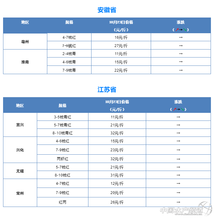 摘要: 中國水產頻道原創報道,10月23日全國小龍蝦市場批發價 。