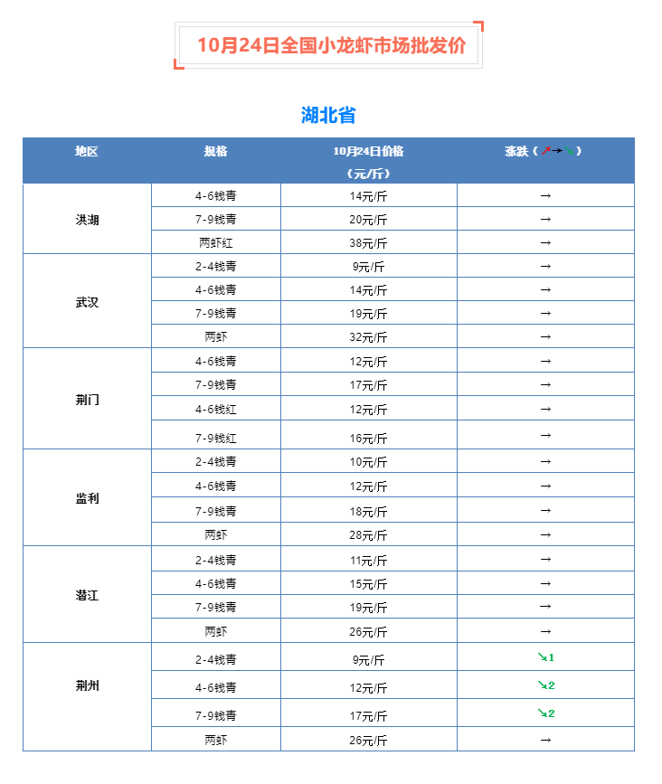 冷空氣來了!小龍蝦行情更冷,湖北荊州再次下滑1-2元/斤!10月24日小龍蝦批發市場行情